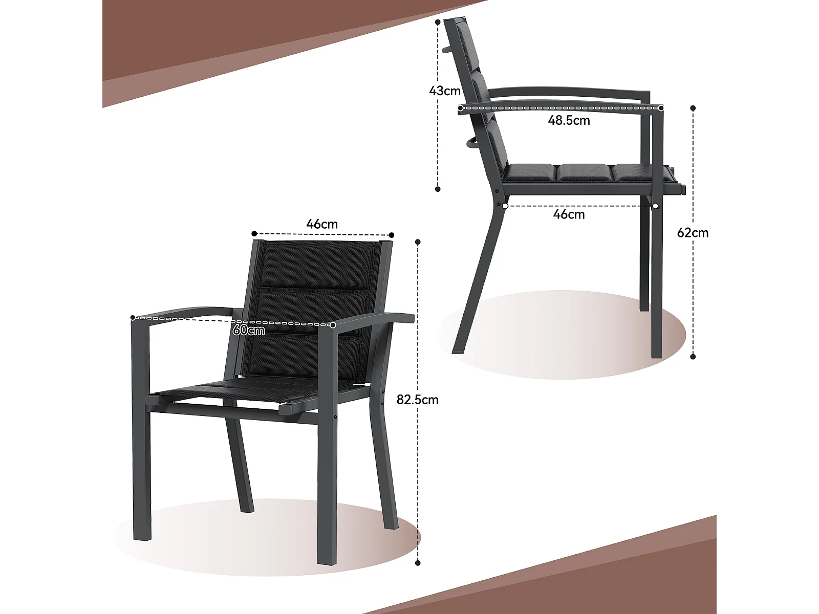 Chaises de Jardin - Lot de 2 Chaises | Structure en Aluminium avec Tissu Tessilium Confortable, Haute Résistance aux UV et aux Intempéries, Marron