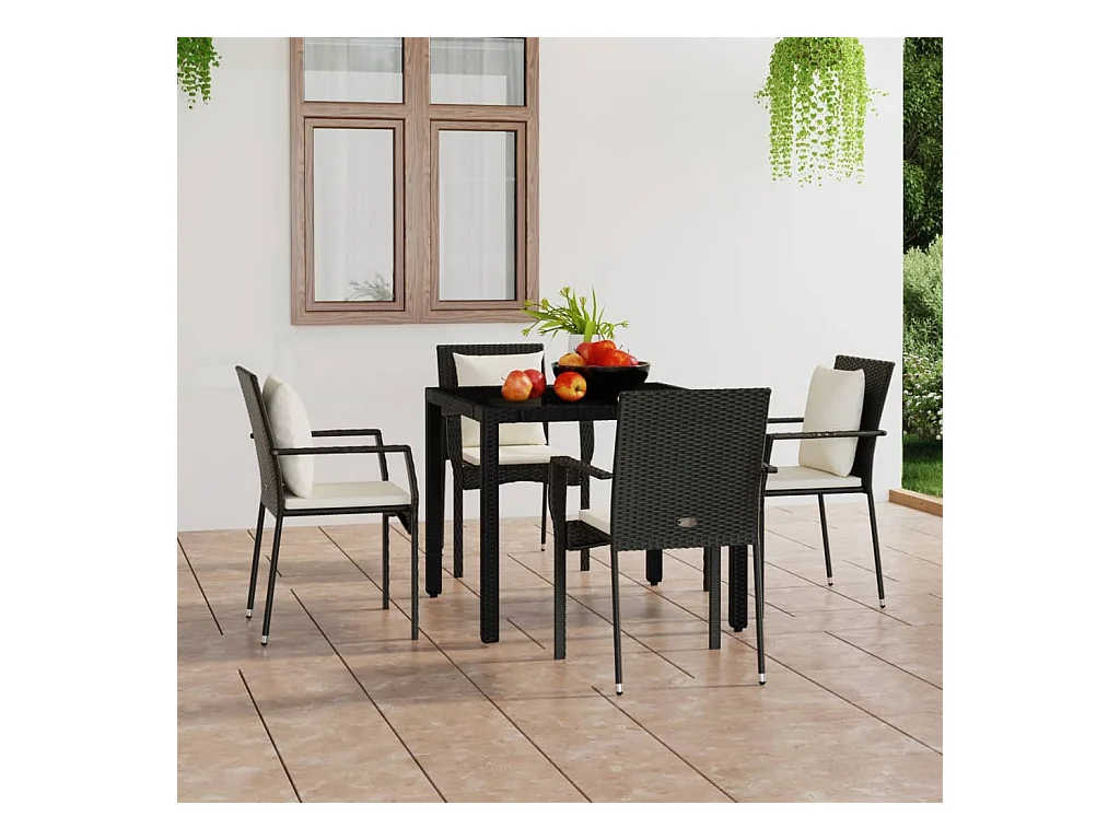 Chaises de jardin lot de 4 avec coussins Résine tressée Noir REO23952