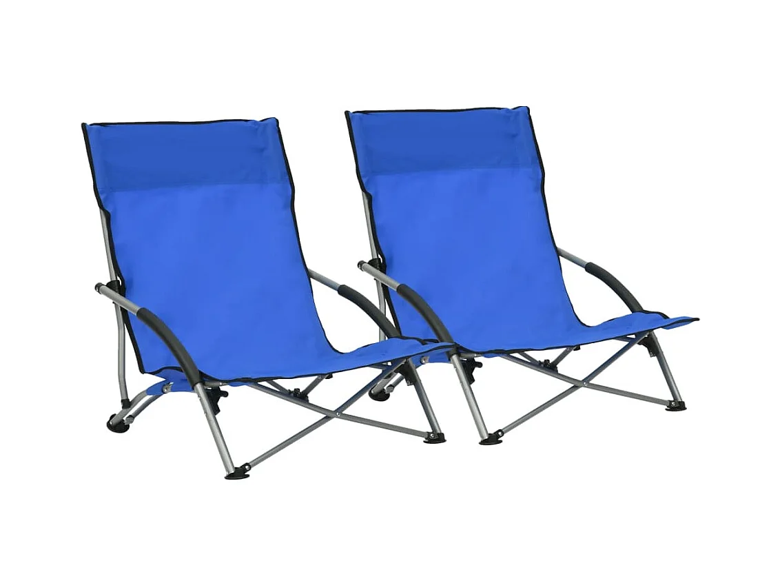 Chaises de plage pliables 2 pcs Bleu Tissu 3