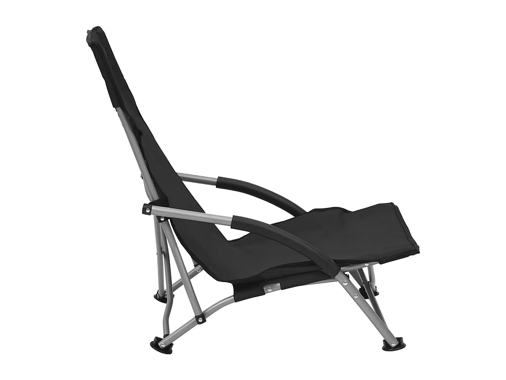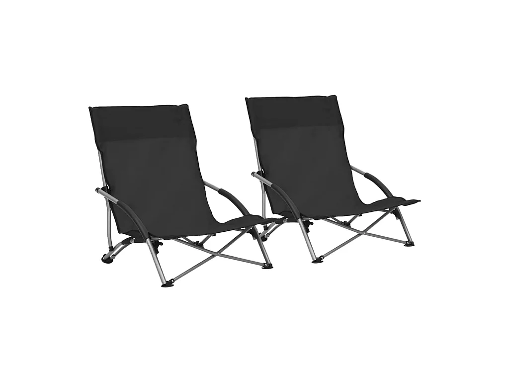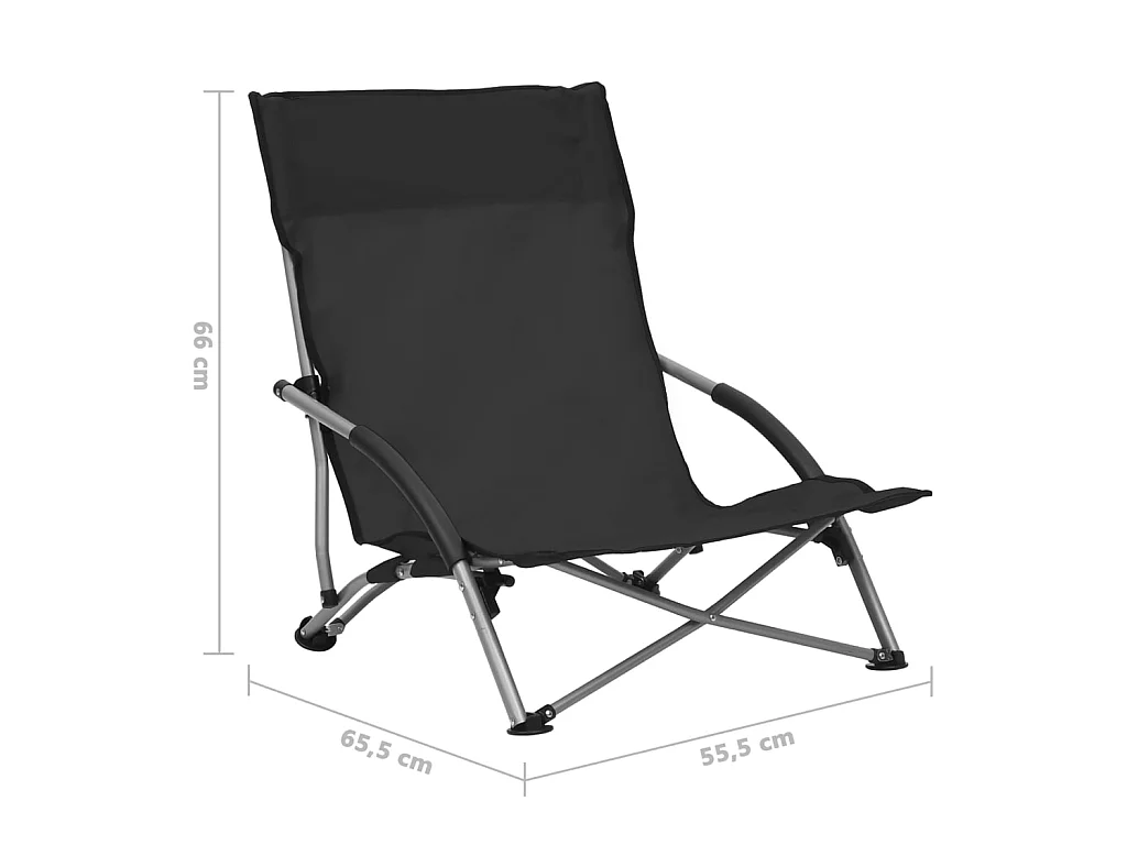 Chaises de plage pliables 2 pcs Noir Tissu 3