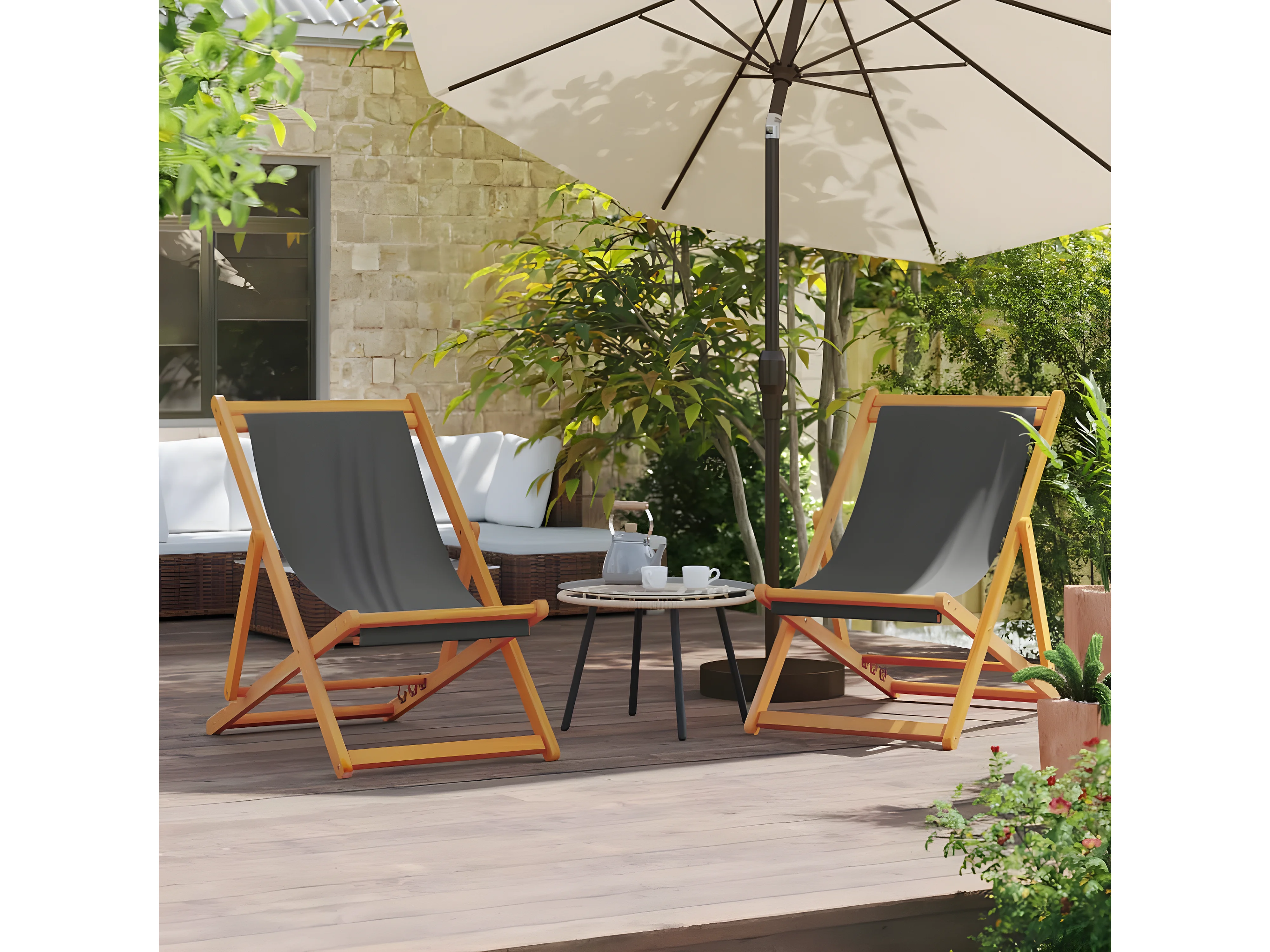 Chaises de plage pliables lot de 2 gris tissu