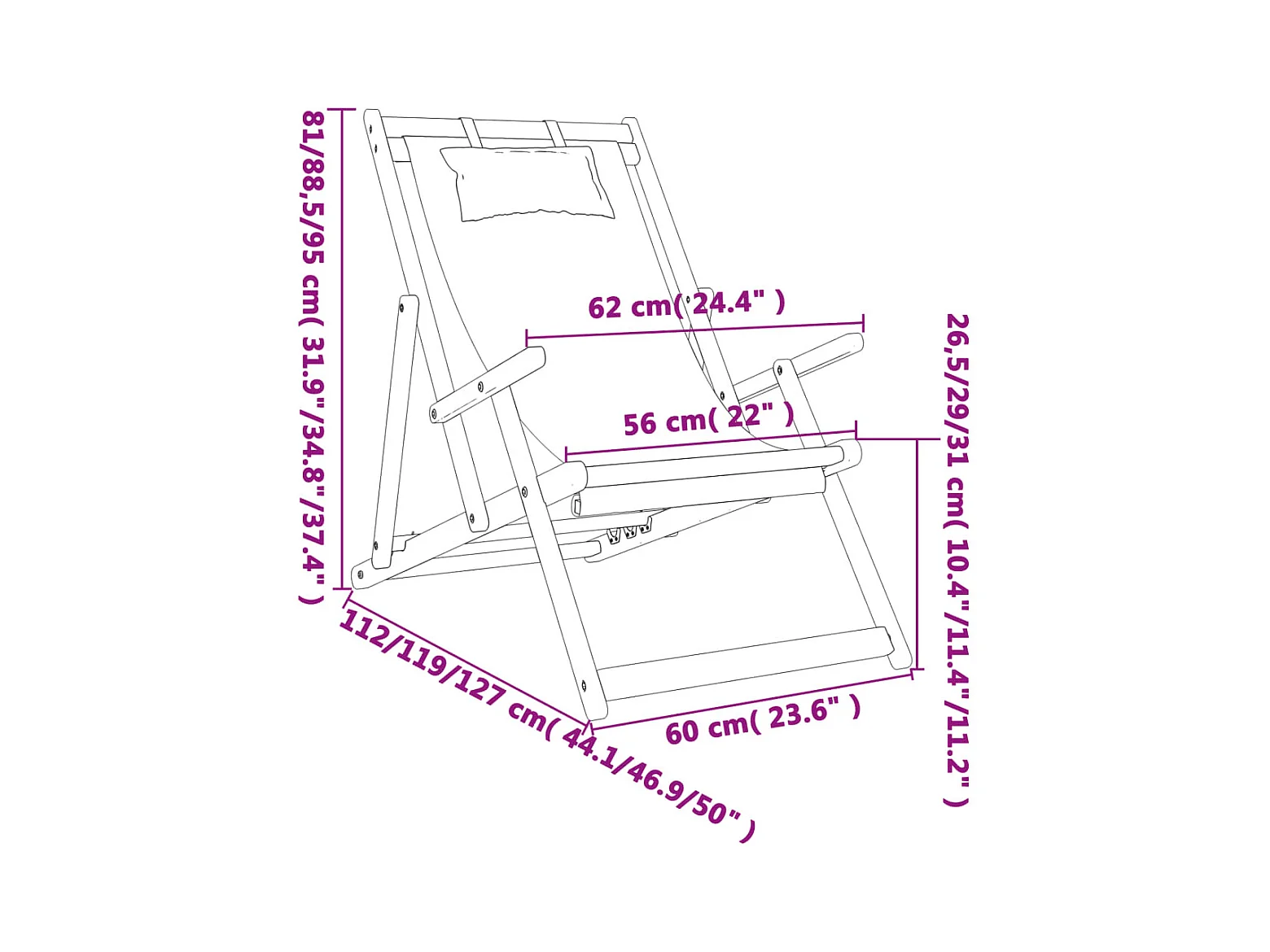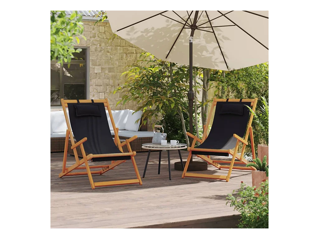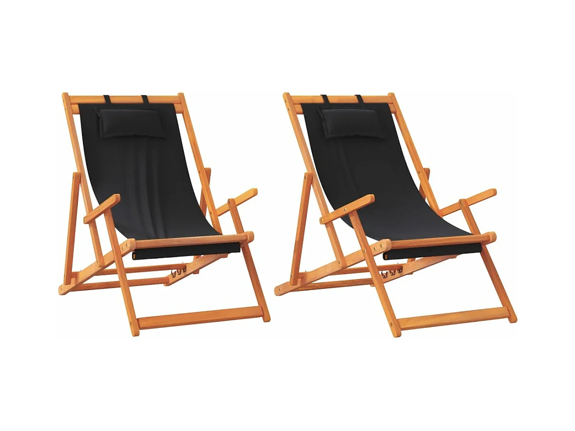 Chaises de plage pliables lot de 2 noir tissu