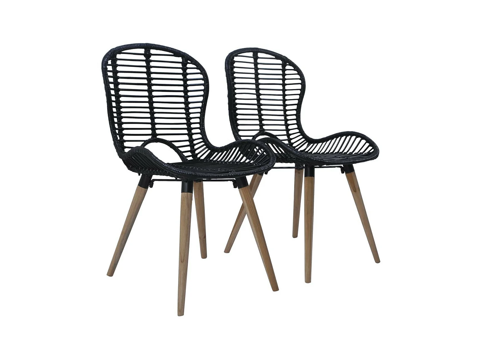 Chaises de salle à manger 2 pcs Noir Rotin naturel