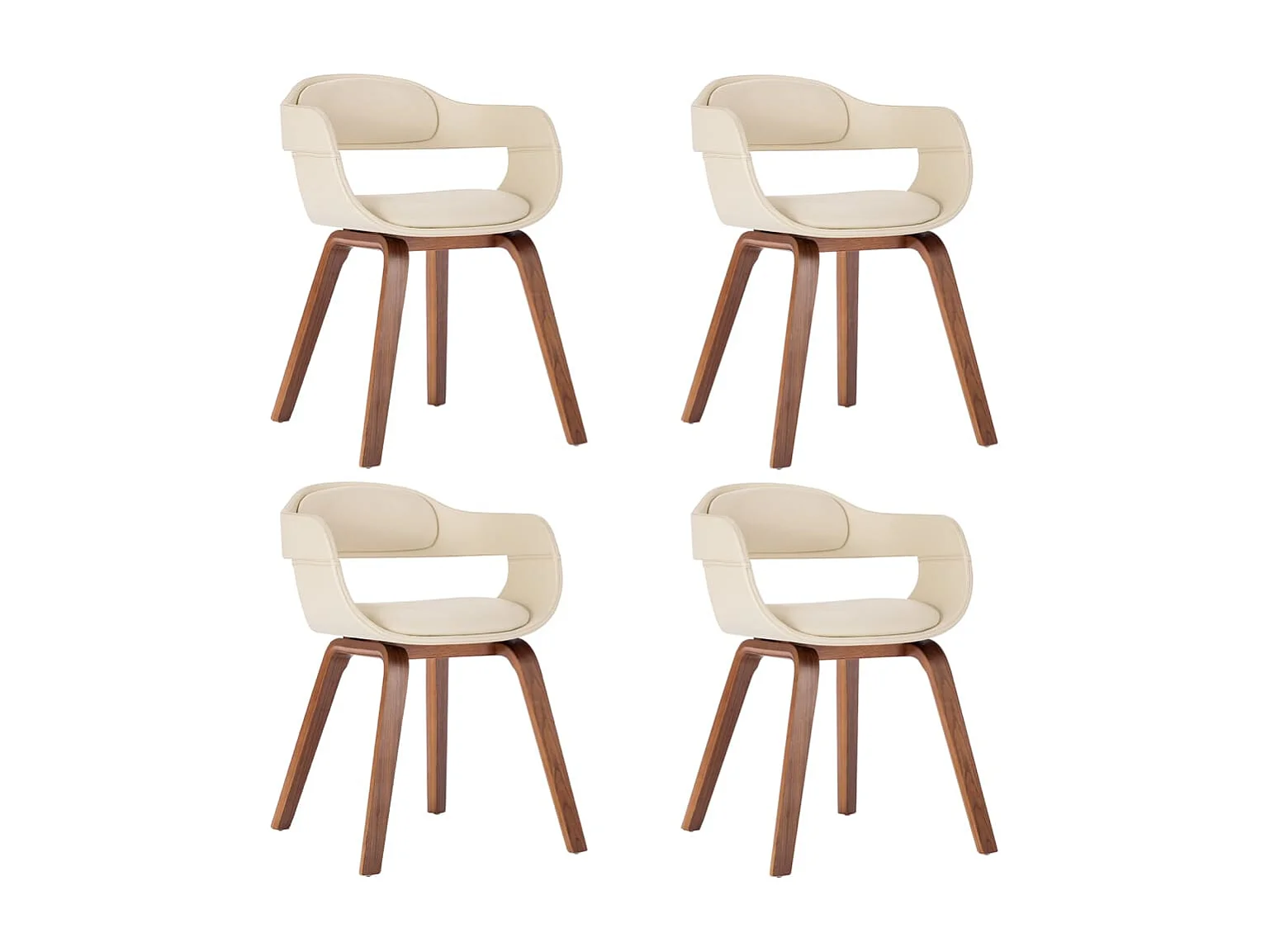 Chaises de salle à manger 4 pcs Crème Similicuir et bois courbé 3