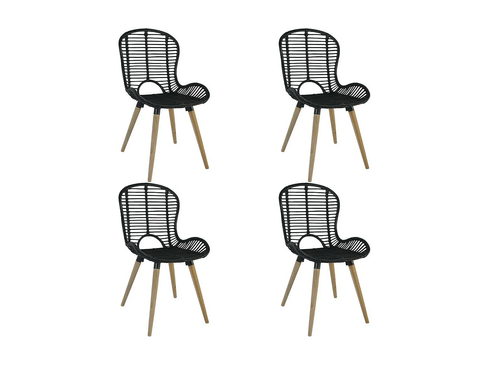 Chaises de salle à manger 4 pcs Noir Rotin naturel