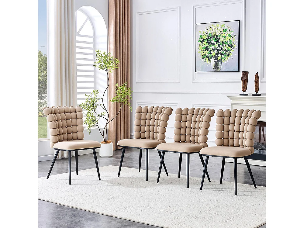 Chaises de salle à manger à boules en velours (ensemble de 2) - pieds en métal peint noir + support stable, couleur camel