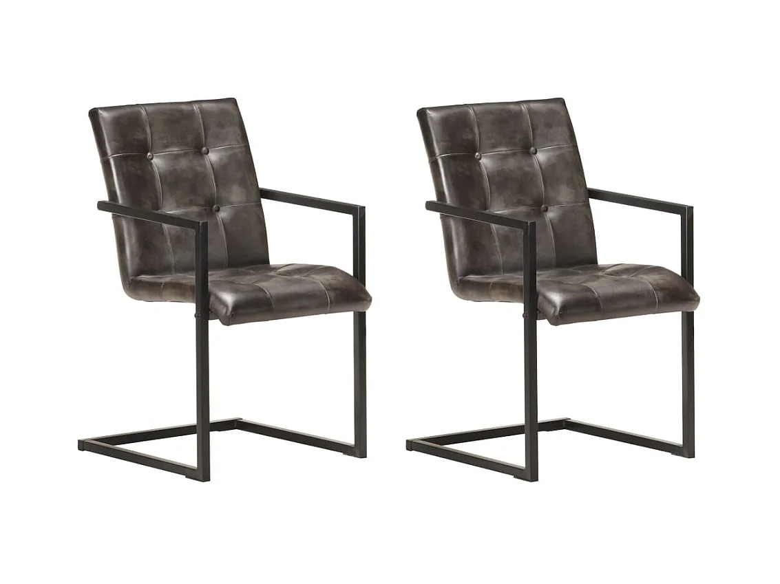Chaises de salle à manger cantilever 2 pcs Gris Cuir véritable 3