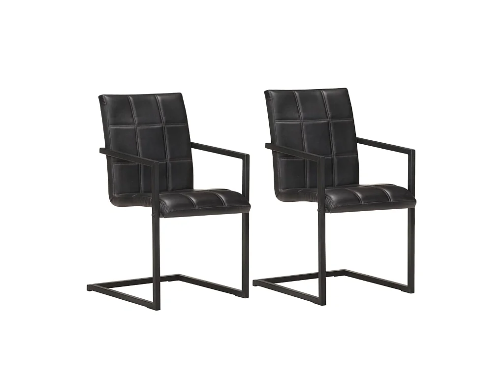 Chaises de salle à manger cantilever 2 pcs Noir Cuir véritable