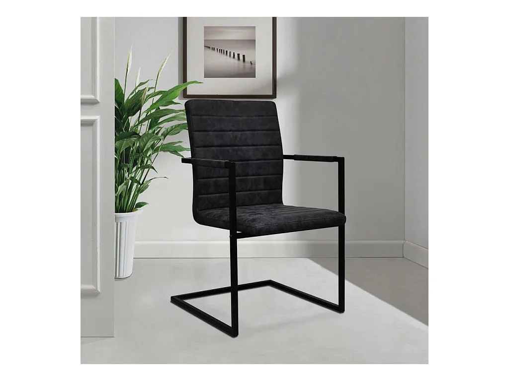 Chaises de salle à manger cantilever 2 pcs Noir Similicuir 3
