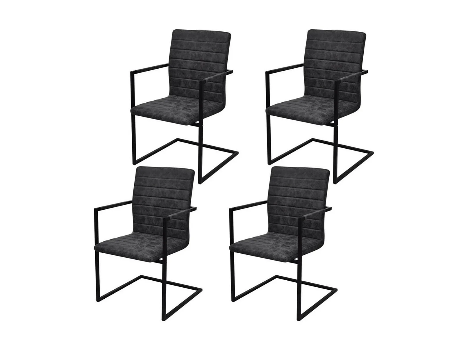 Chaises de salle à manger cantilever 4 pcs Noir Similicuir 3