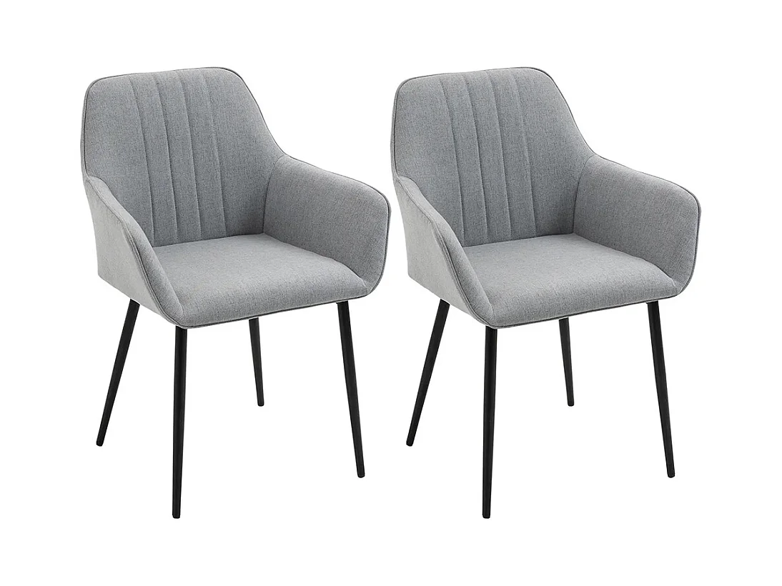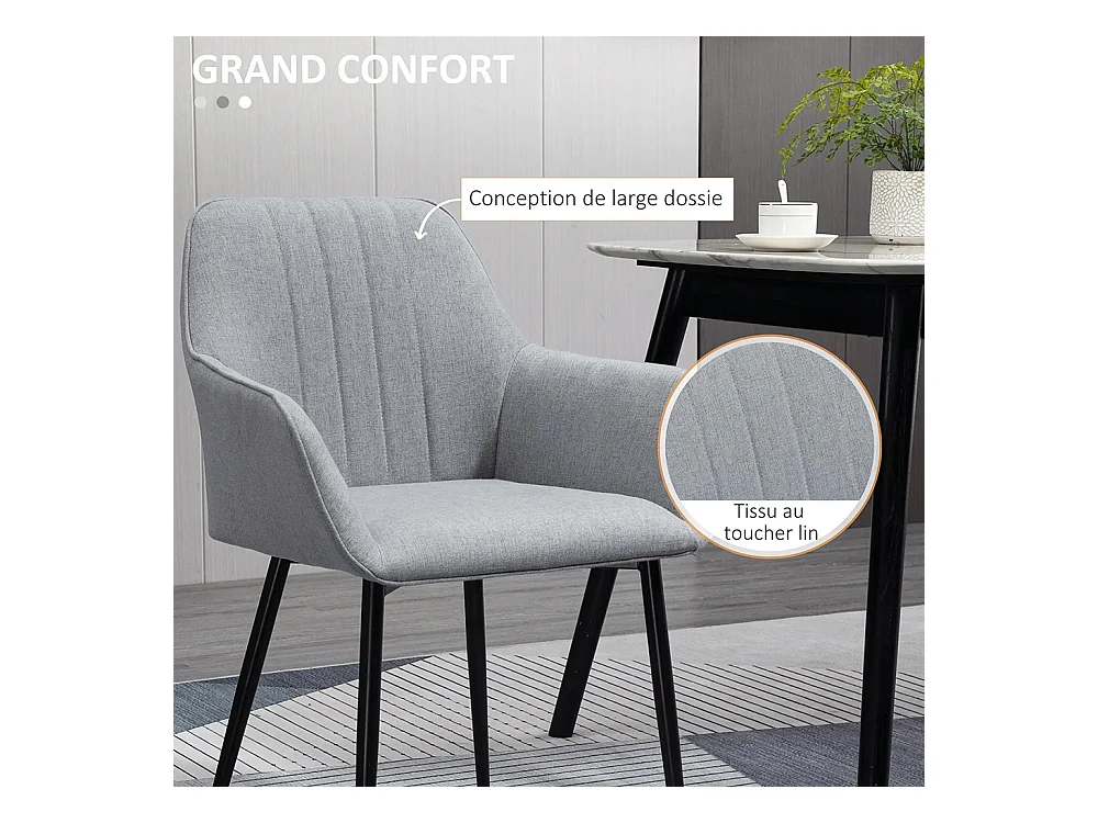 Chaises de Salle à Manger Chaises de Visiteur Design scandinave - Lot de 2 chaises - Pieds effilés métal Noir - Assise Dossier accoudoirs ergonomiques Lin Gris