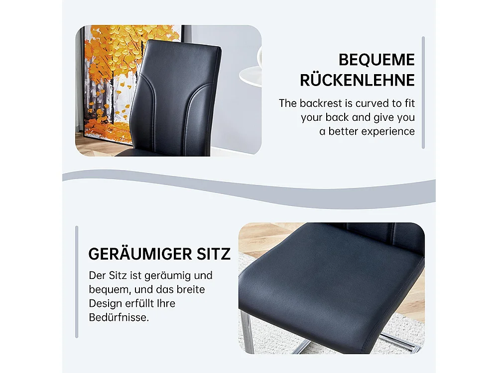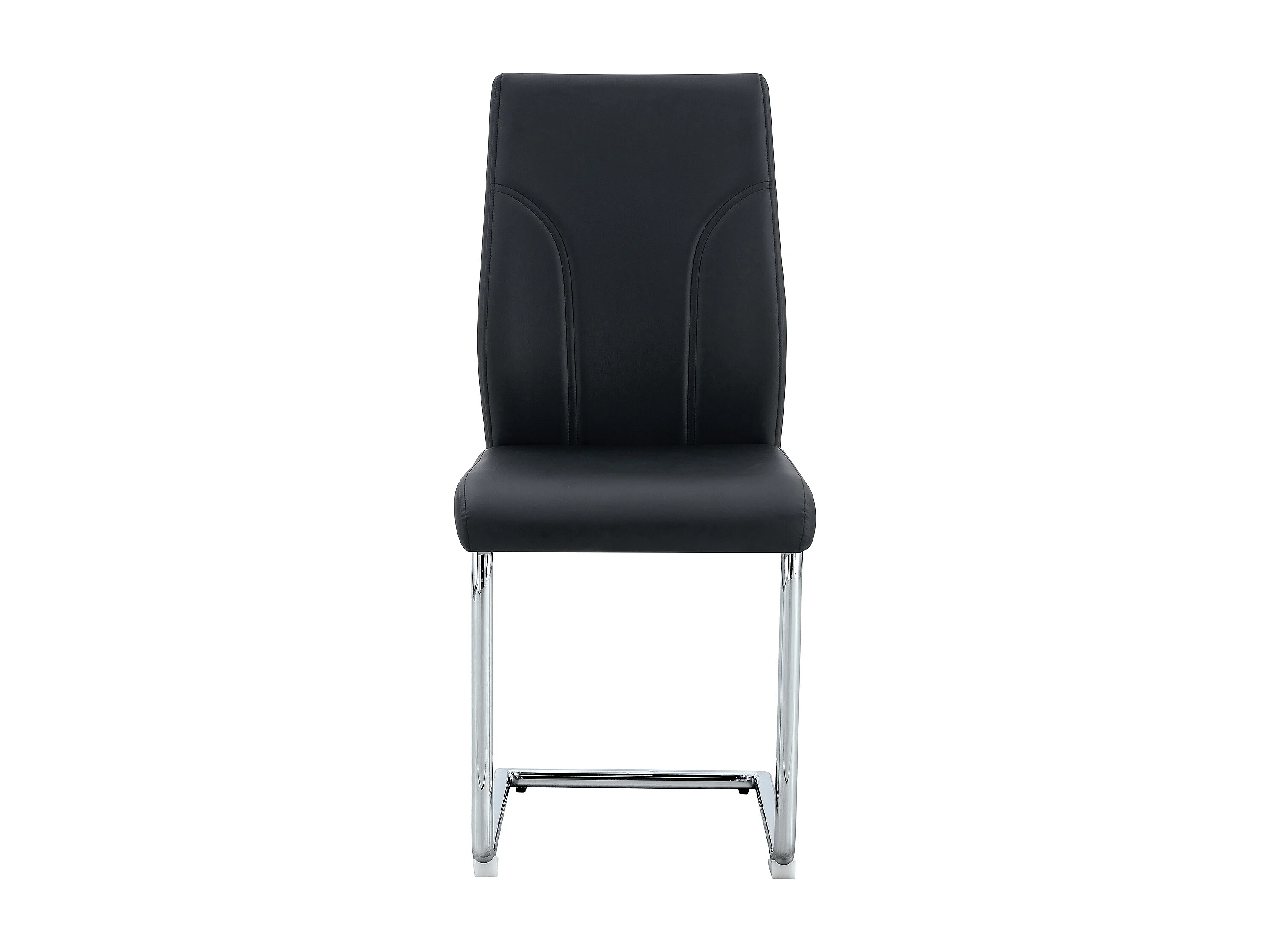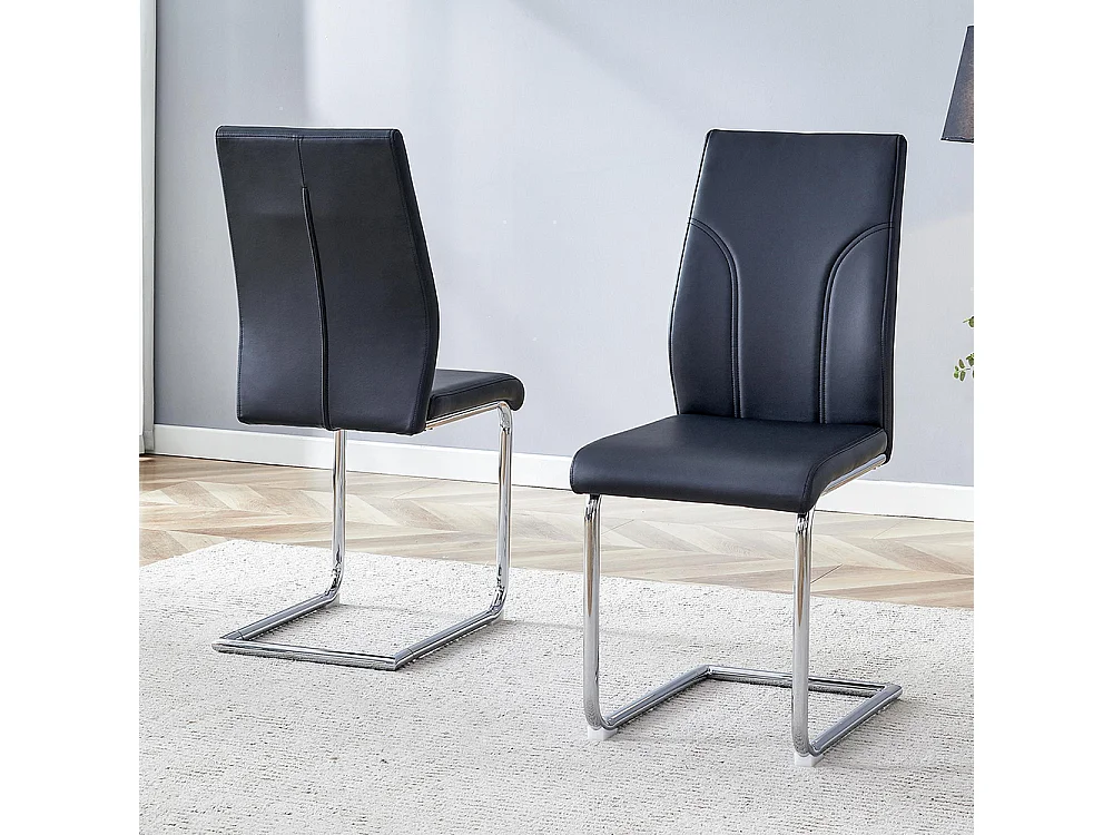 Chaises de salle à manger en PU, set de 2, pieds en métal argenté, noir