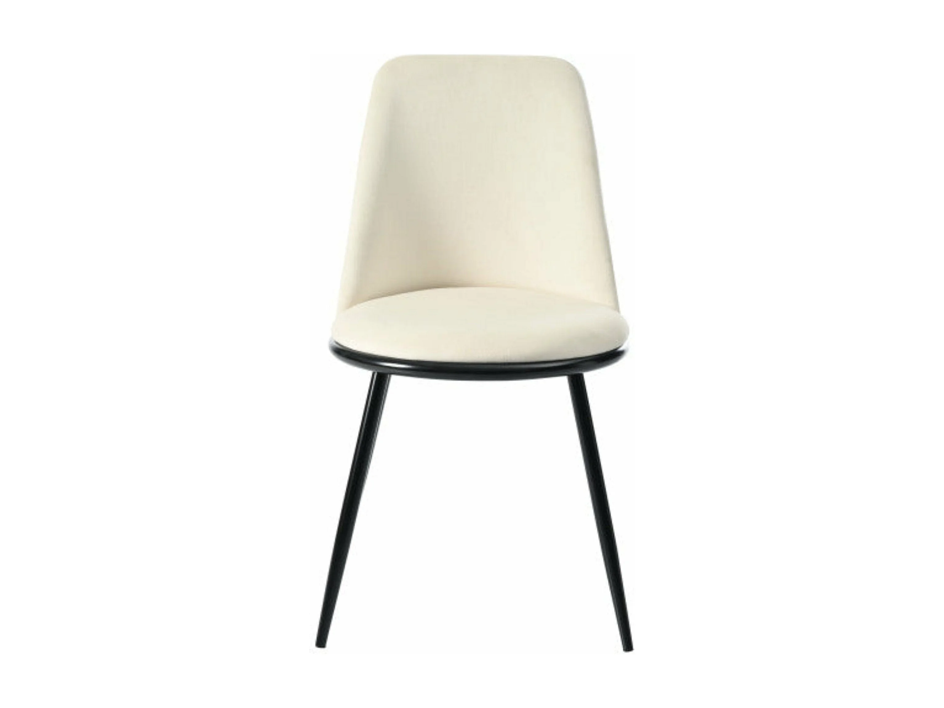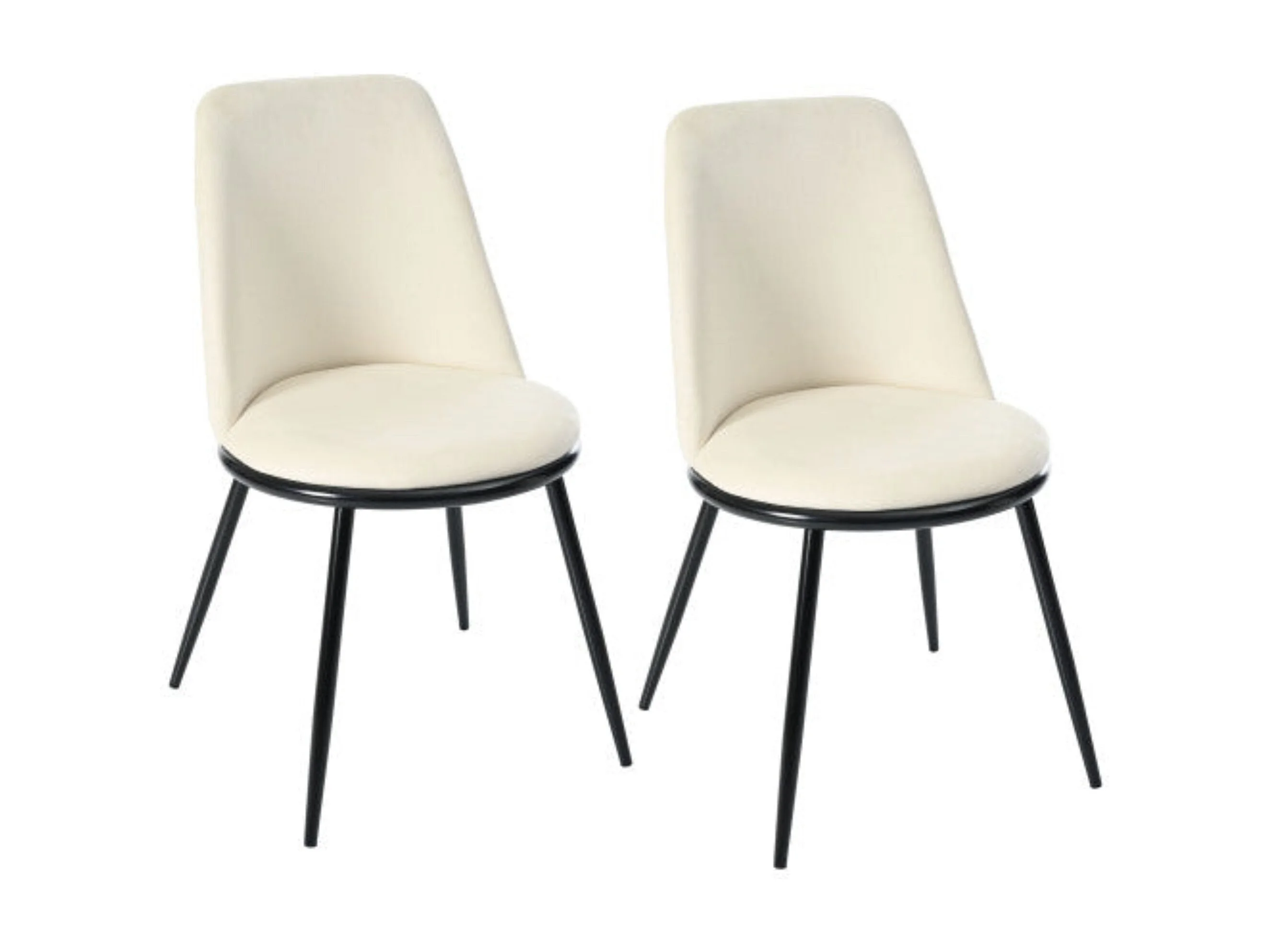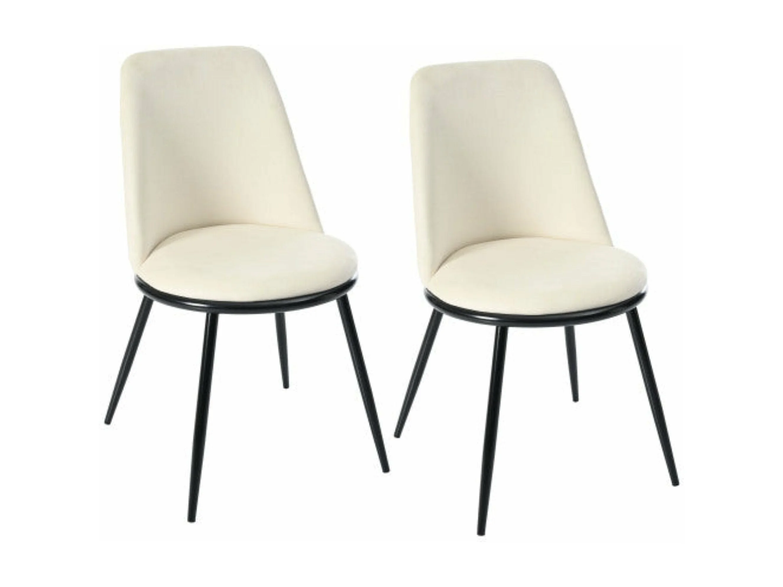 Chaises de salle à manger en velours, dossier rond, pieds noirs- lot de 2,beige,d44cm×h88cm