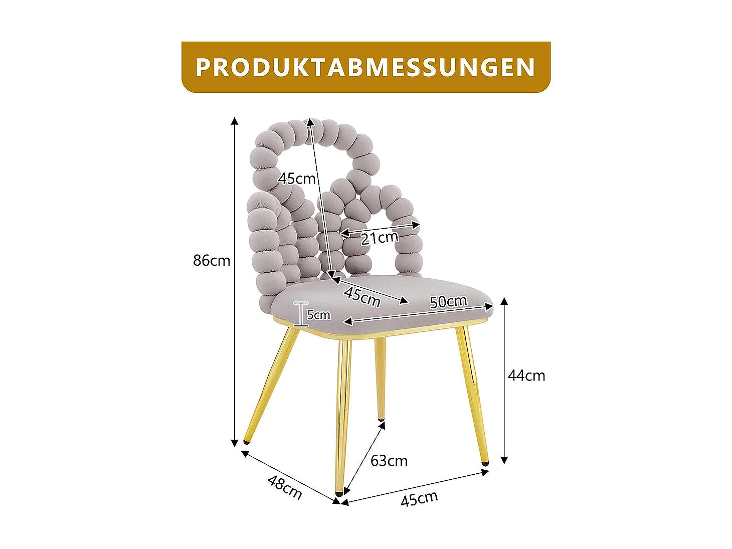 Chaises de salle à manger en velours (ensemble de 2) avec dossier à boules et chaînes, pieds robustes en métal plaqué or, gris clair