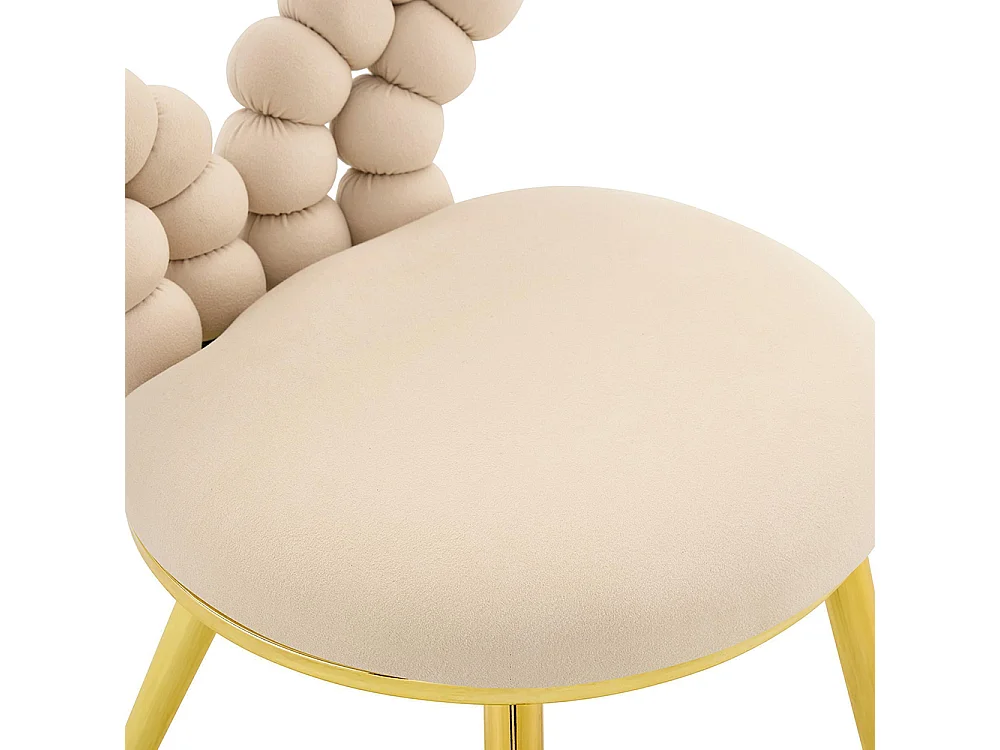 Chaises de salle à manger en velours (ensemble de 2), dossier à découpe triangulaire, pieds en métal peint en noir, Beige