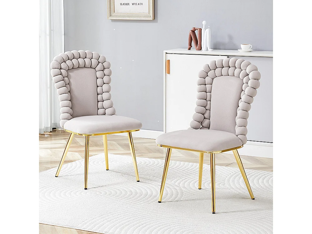 Chaises de salle à manger en velours (ensemble de 2), dossier en forme de boule, pieds en métal doré, gris clair