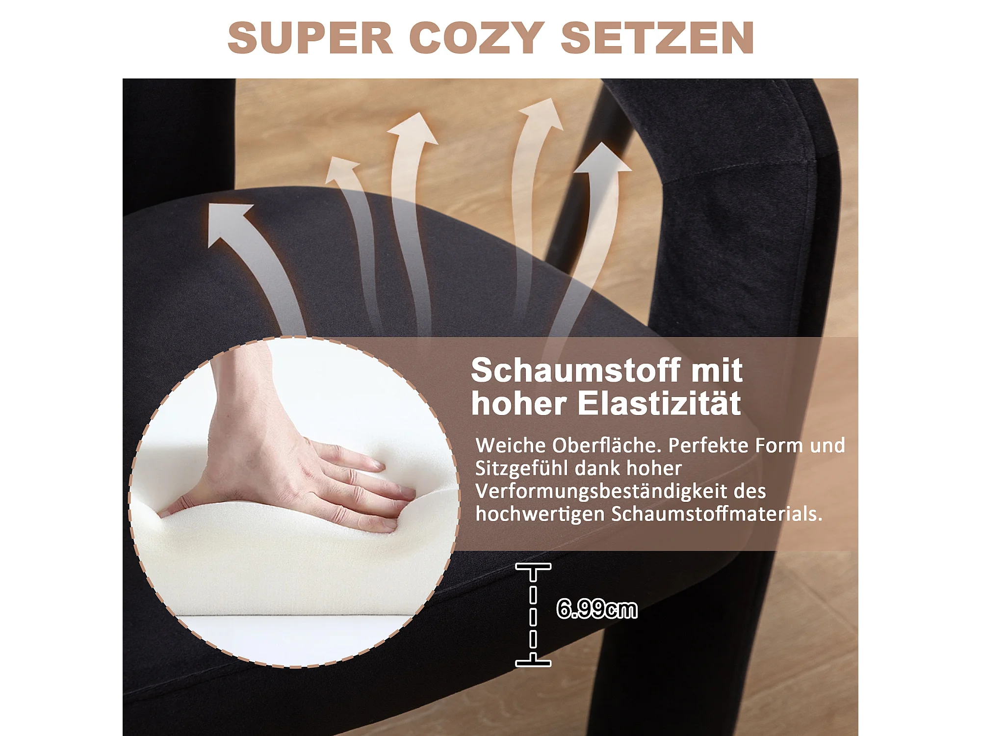 Chaises de Salle à Manger en Velours Moderne, Chaises Déco Rembourrées, Chaises de Cuisine et Salon, Lot de 2 Fauteuils de Loisirs