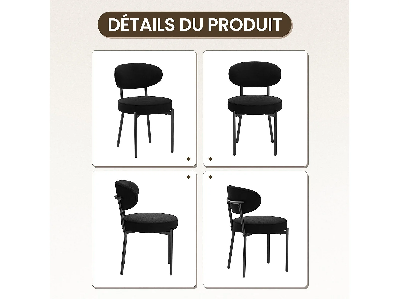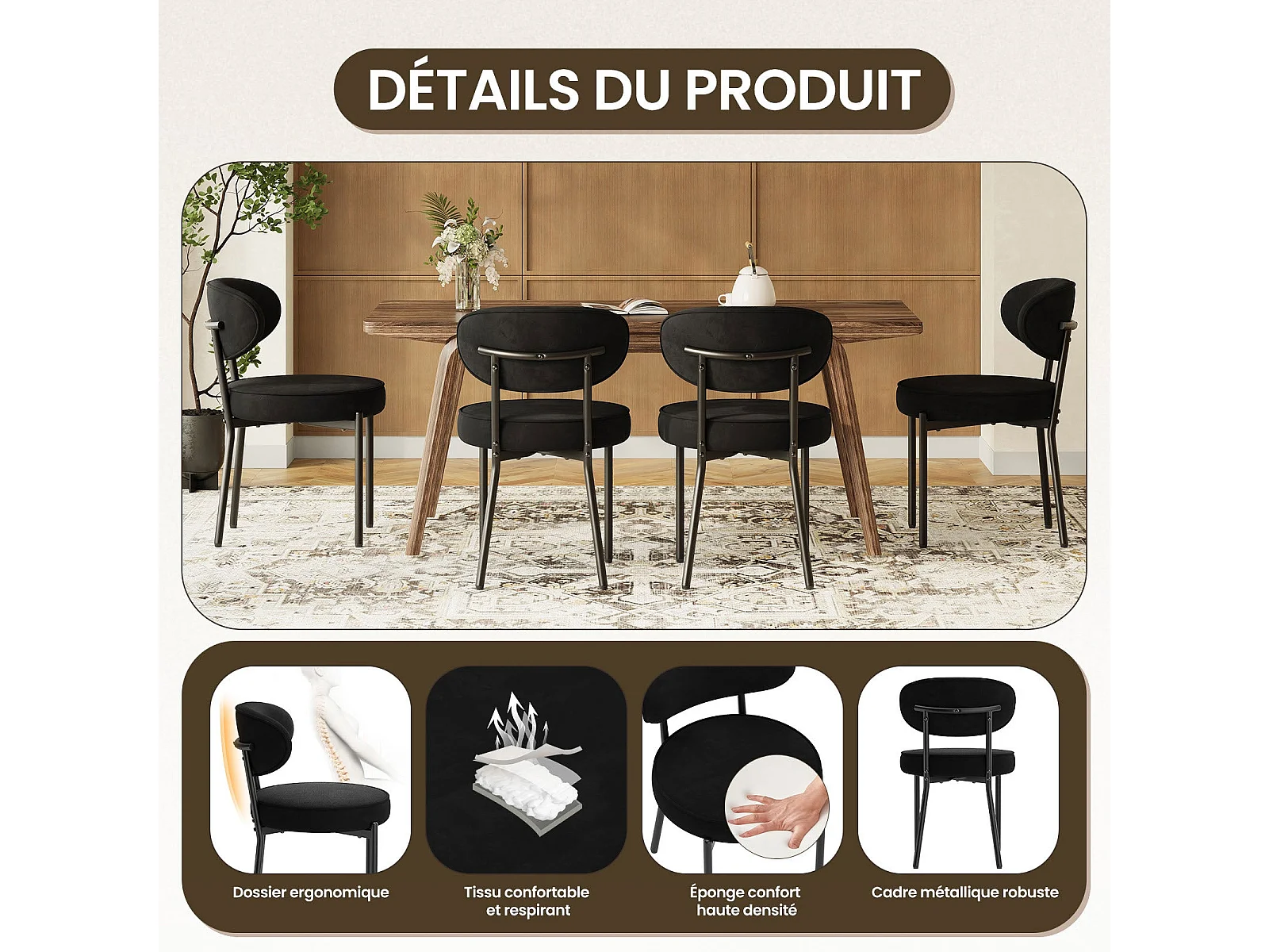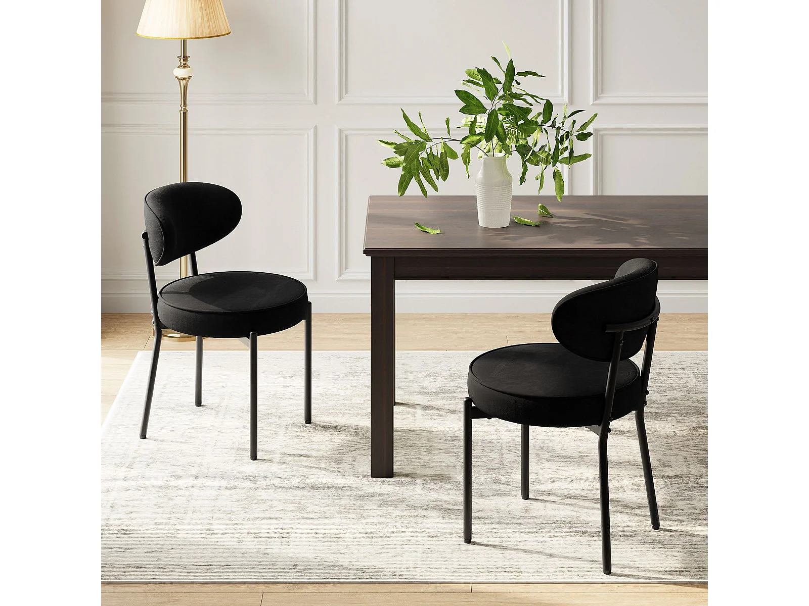 Chaises de salle à manger modernes – Lot de 2, pieds en métal robustes et assise ultra-confortable-Noir