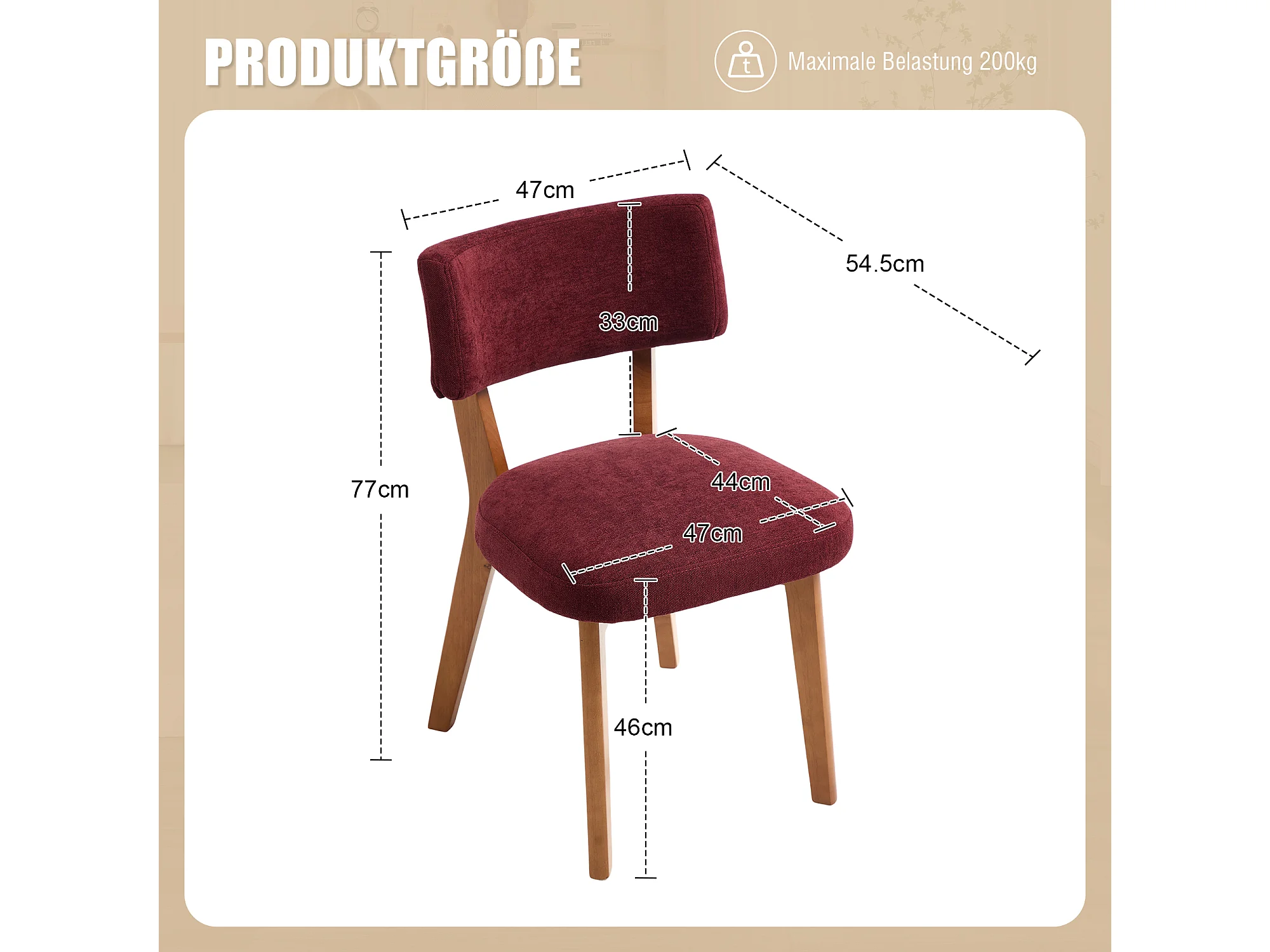 Chaises de salle à manger, style vintage, pour cuisine, salle à manger ou bureau, bois + toile de jute bordeaux