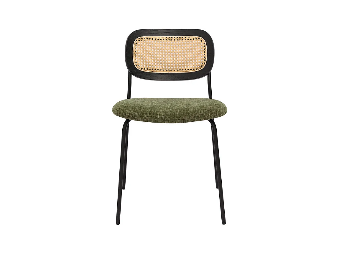 Chaises design en tissu effet velours texturé vert kaki, métal noir et cannage rotin (lot de 2) MIRANDA