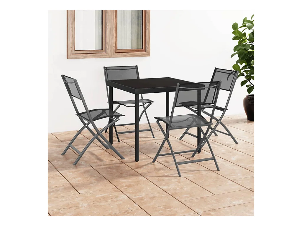 Chaises d'extérieur pliables lot de 4 Noir Acier et textilène