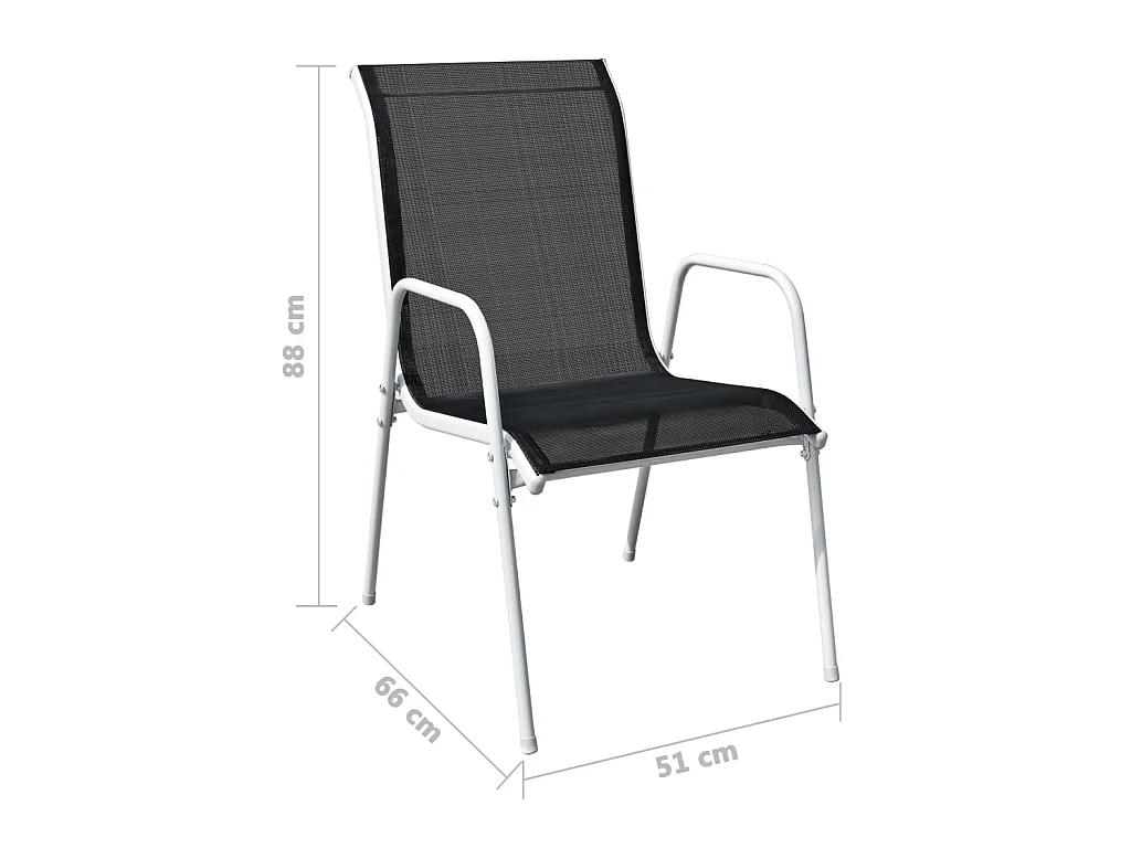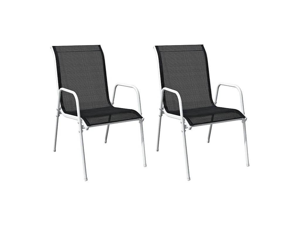Chaises empilables de jardin 2 pcs Acier et textilène Noir