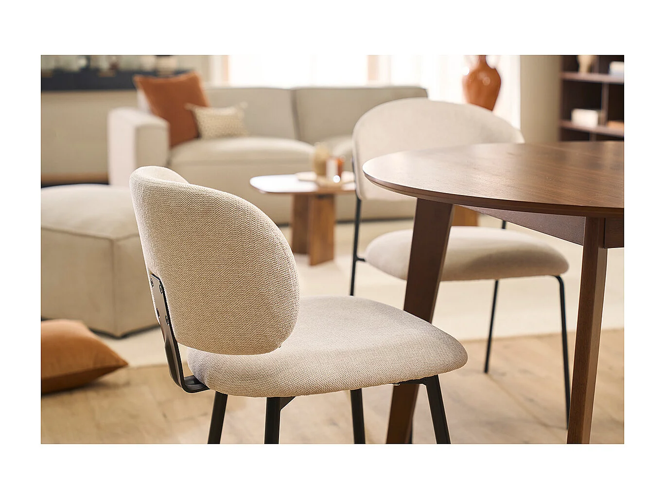 Chaises en tissu effet velours texturé beige et métal noir (lot de 2) ATRIUM