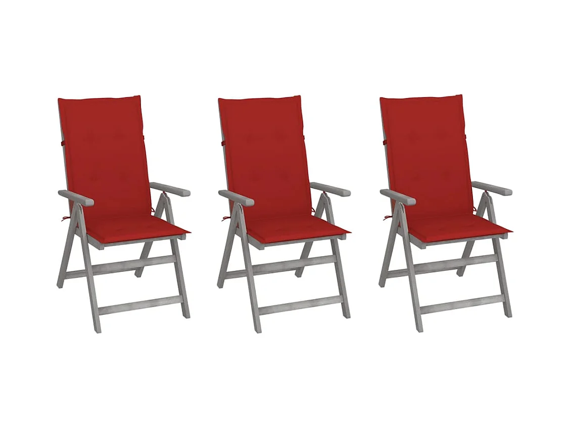Chaises inclinables de jardin 3 pièces avec coussins Bois d'acacia