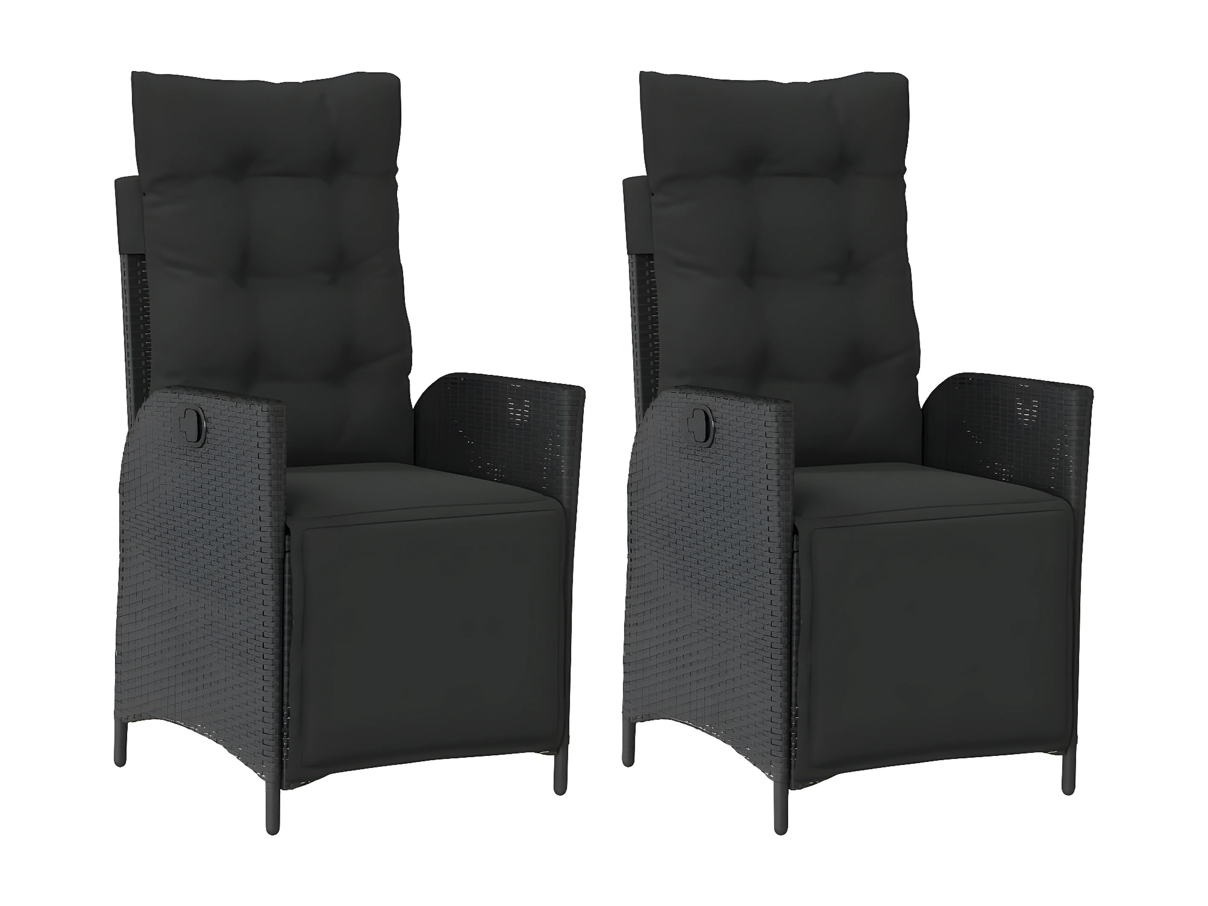 Chaises inclinables de jardin lot de 2 repose-pied noir rotin