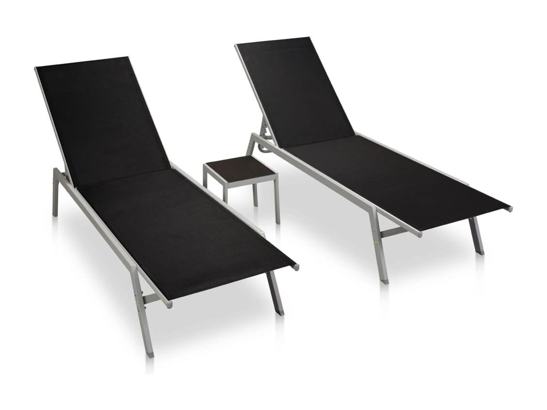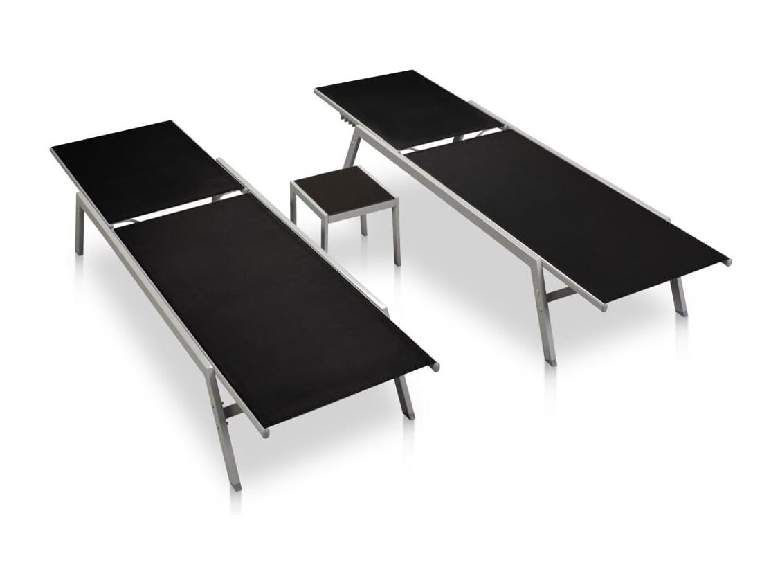 Chaises longues 2 pcs avec table Acier et textilène Noir 2