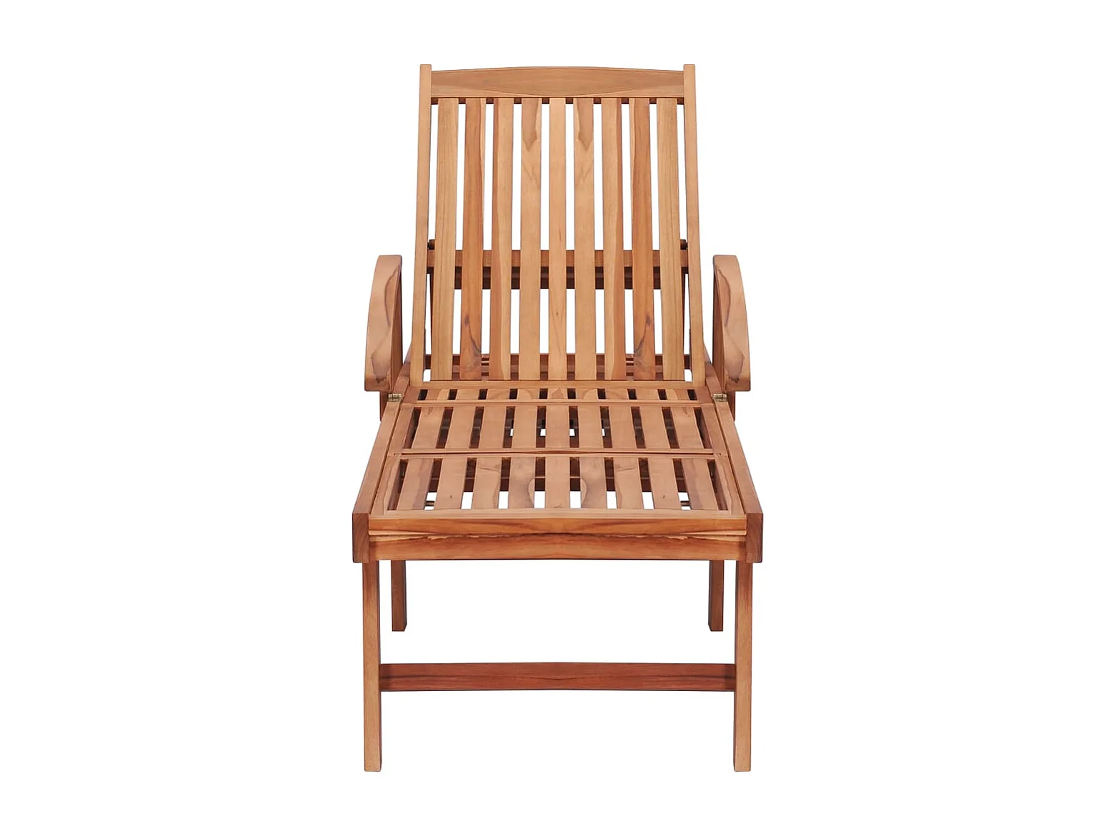 Chaises longues 2 pcs avec table et coussin Bois de teck solide
