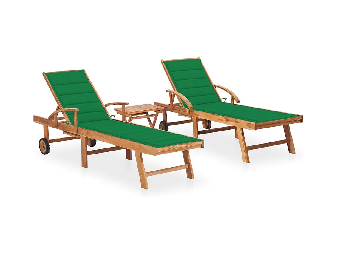 Chaises longues 2 pcs avec table et coussin Bois de teck solide 15