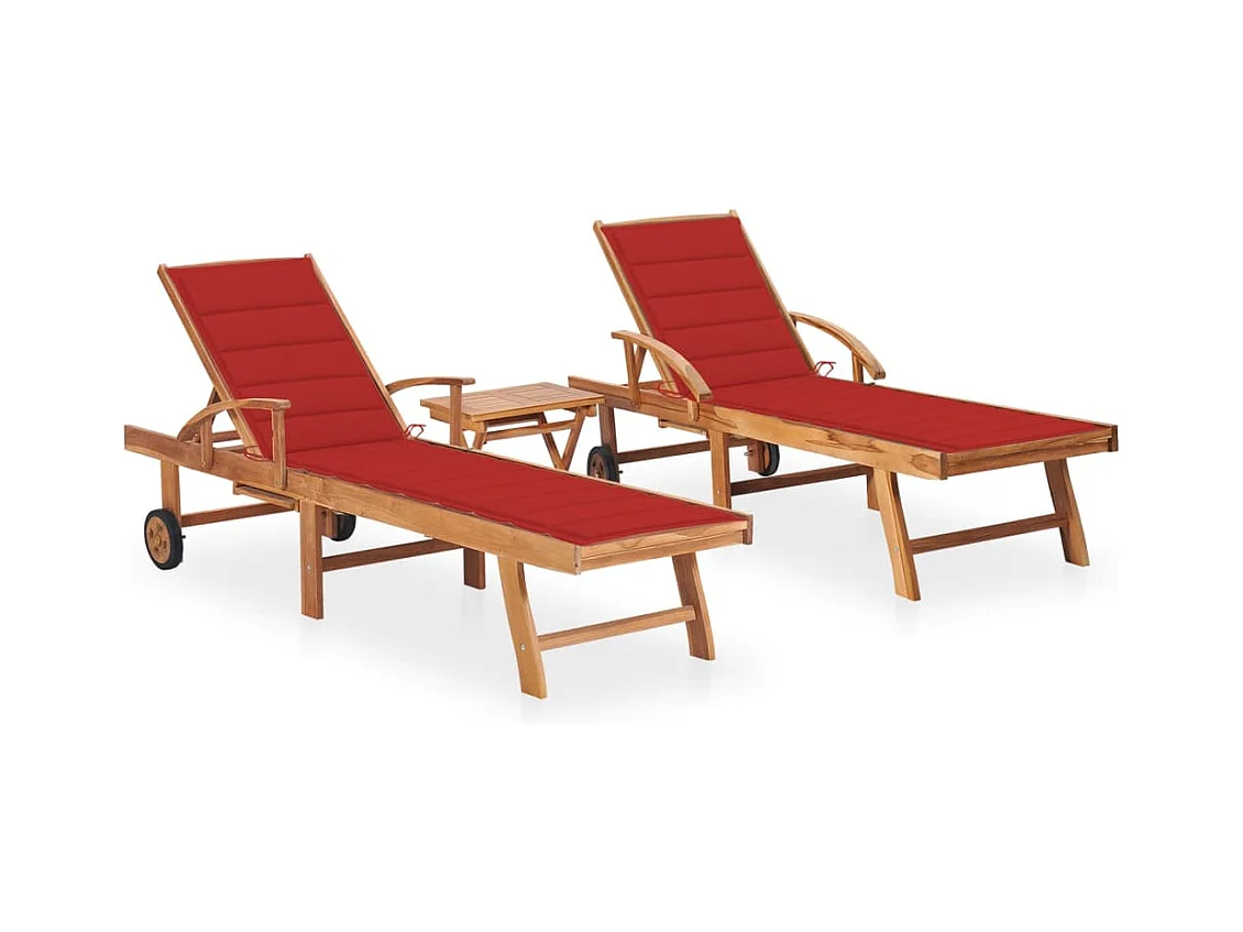 Chaises longues 2 pcs avec table et coussin Bois de teck solide 8