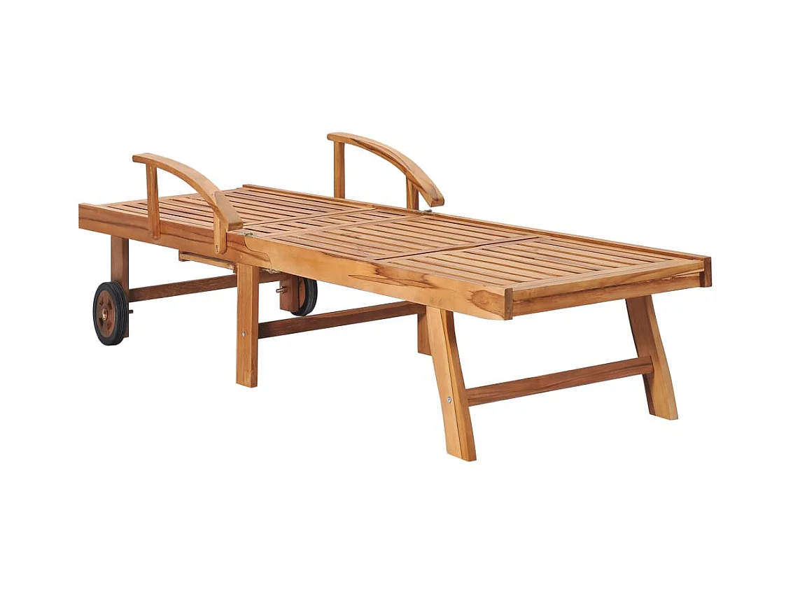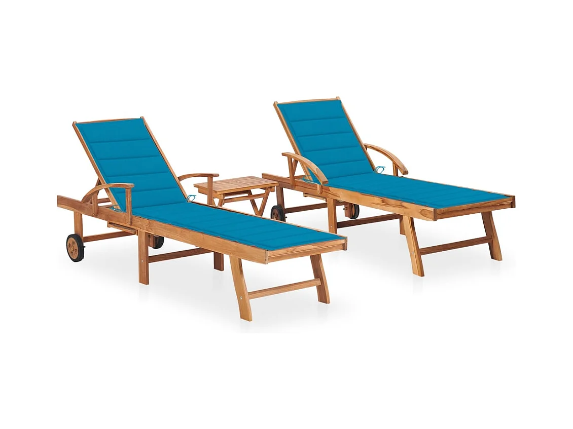 Chaises longues 2 pcs avec table et coussin Bois de teck solide 9