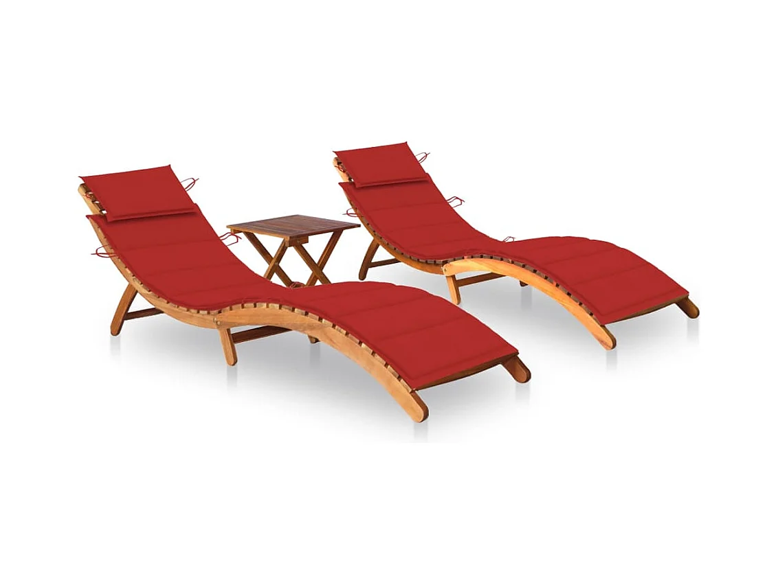 Chaises longues 2 pcs avec table et coussins Acacia solide 18