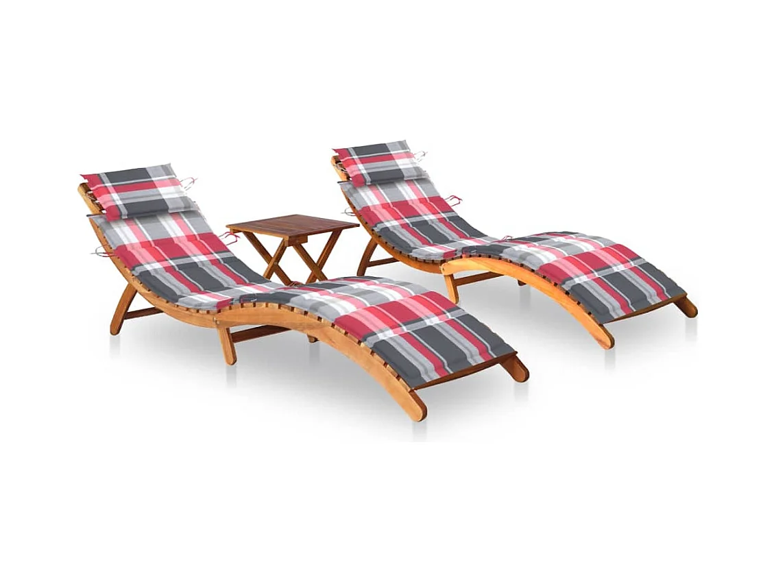 Chaises longues 2 pcs avec table et coussins Acacia solide 25