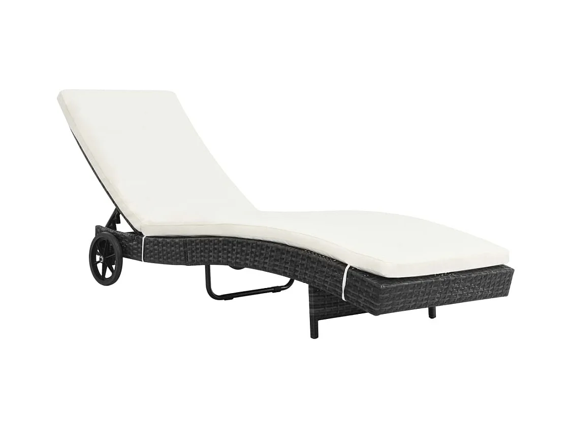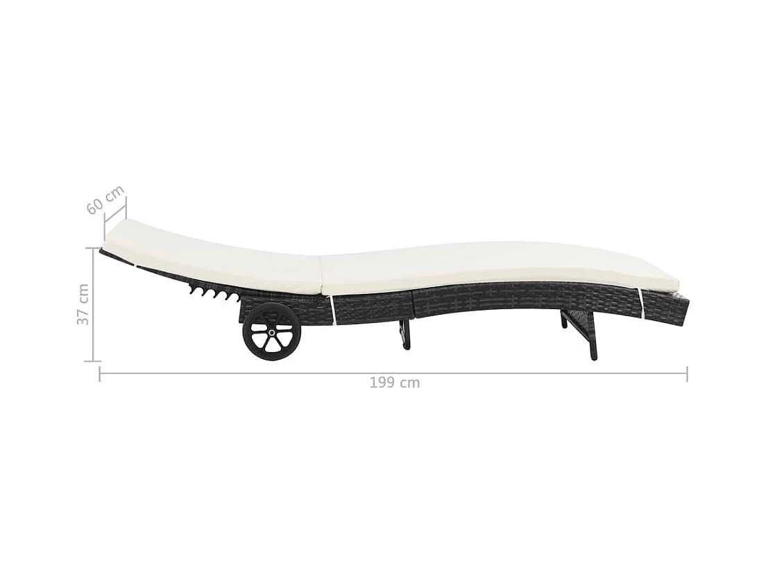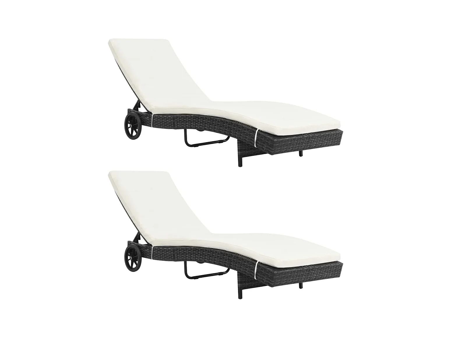 Chaises longues 2pcs avec roues et coussins Résine tressée Noir