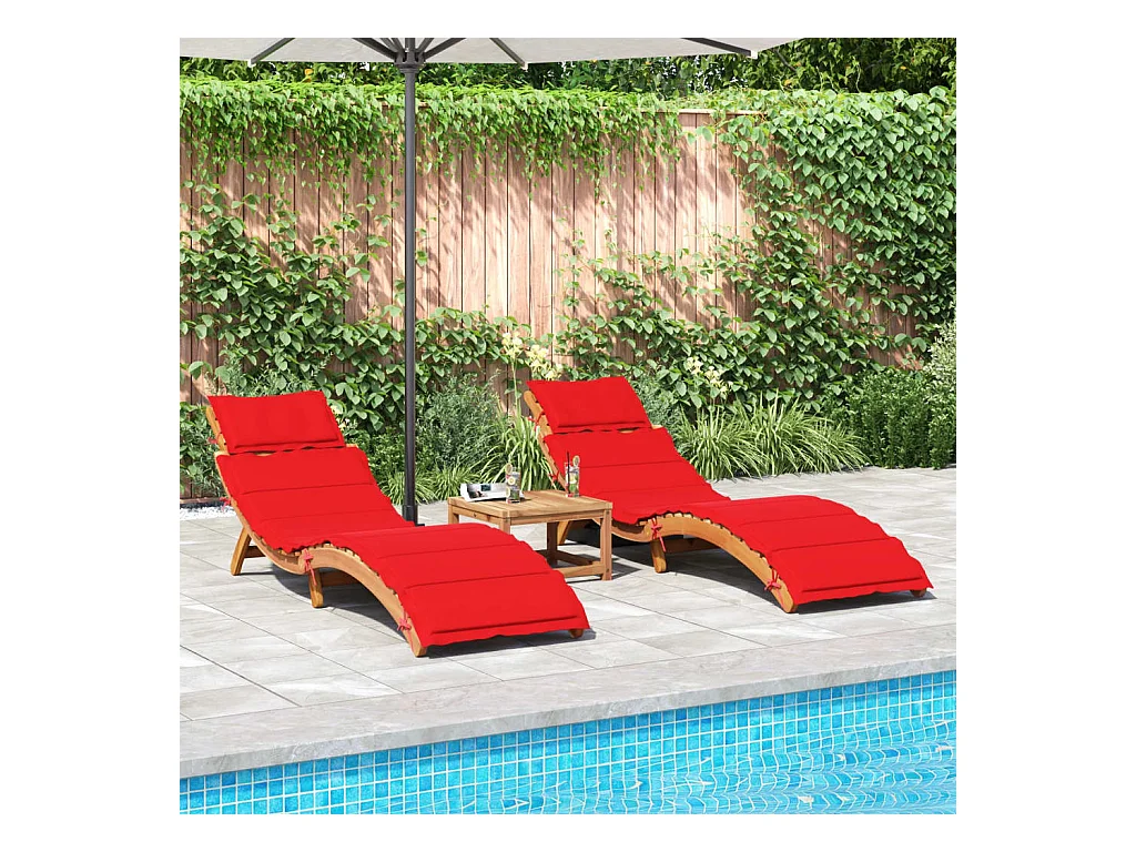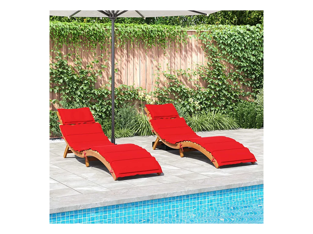 Chaises longues avec coussins lot de 2 rouge bois massif acacia