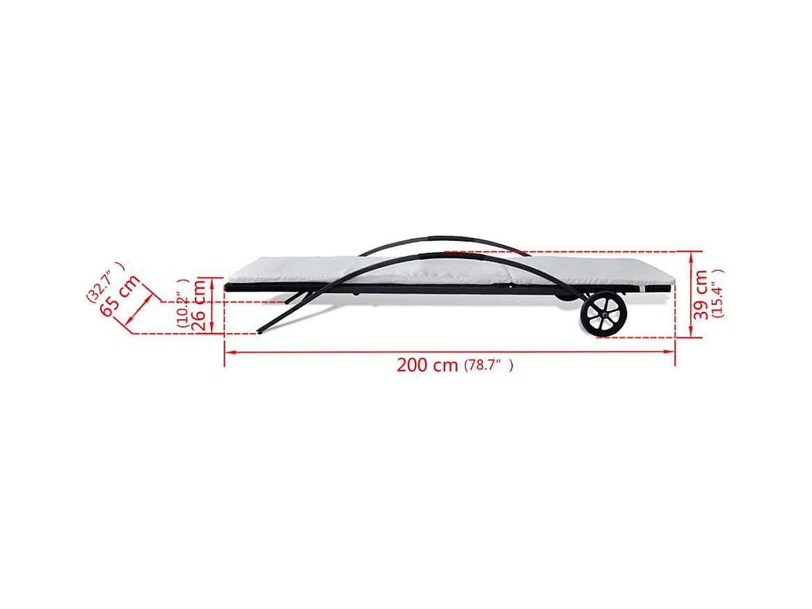 Chaises longues avec table Résine tressée Noir
