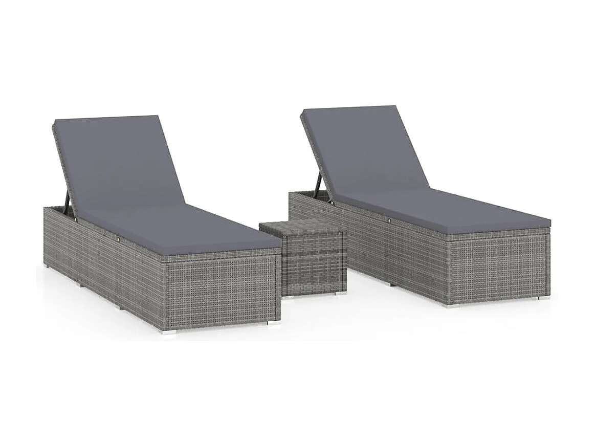 Chaises longues de jardin table à thé 3 pcs Résine tressée Gris