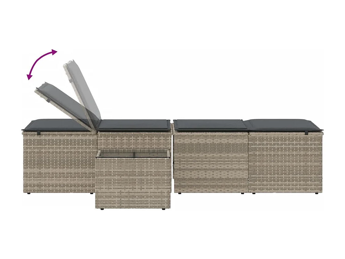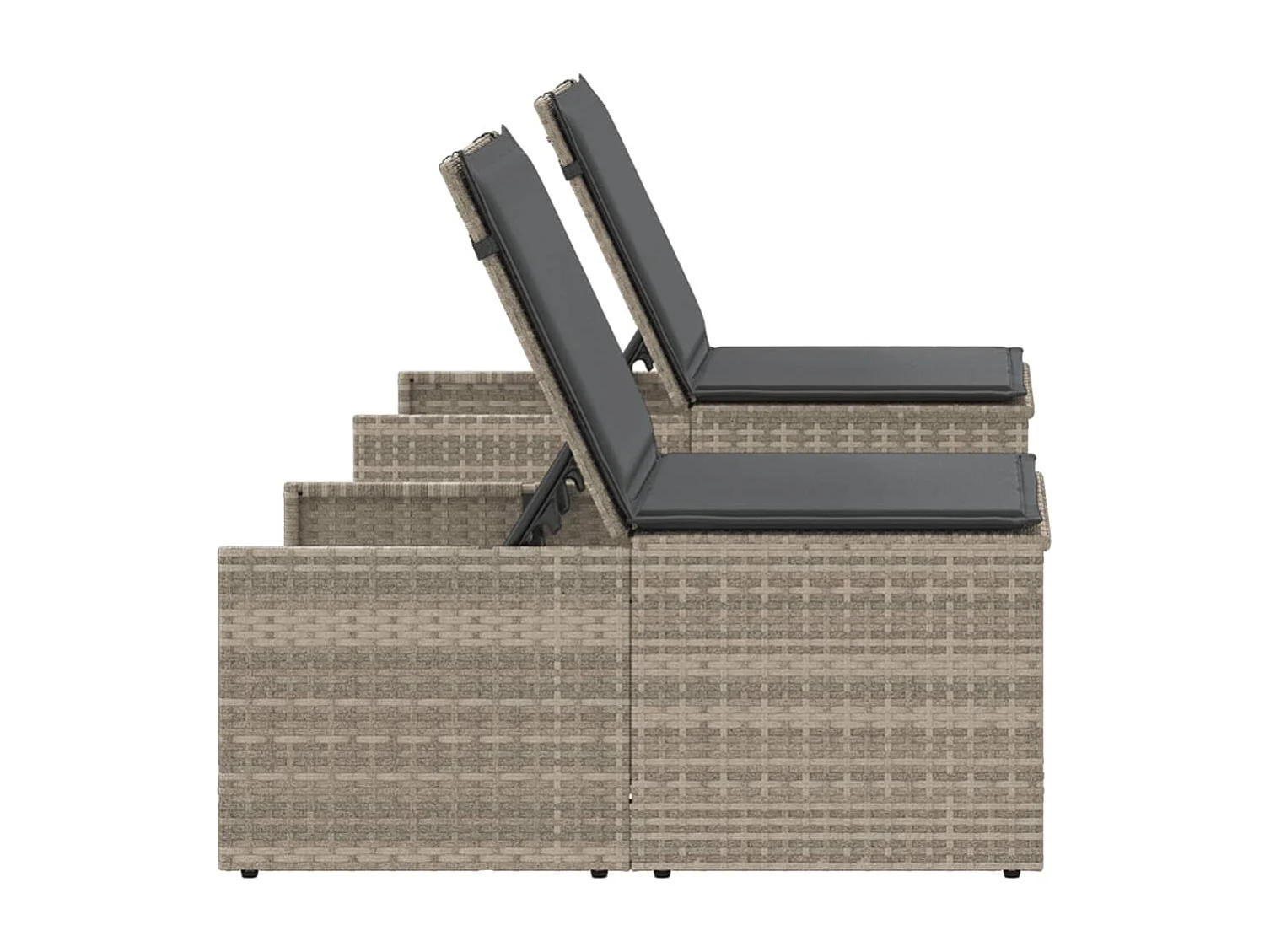 Chaises longues lot de 2 avec table gris clair résine tressée