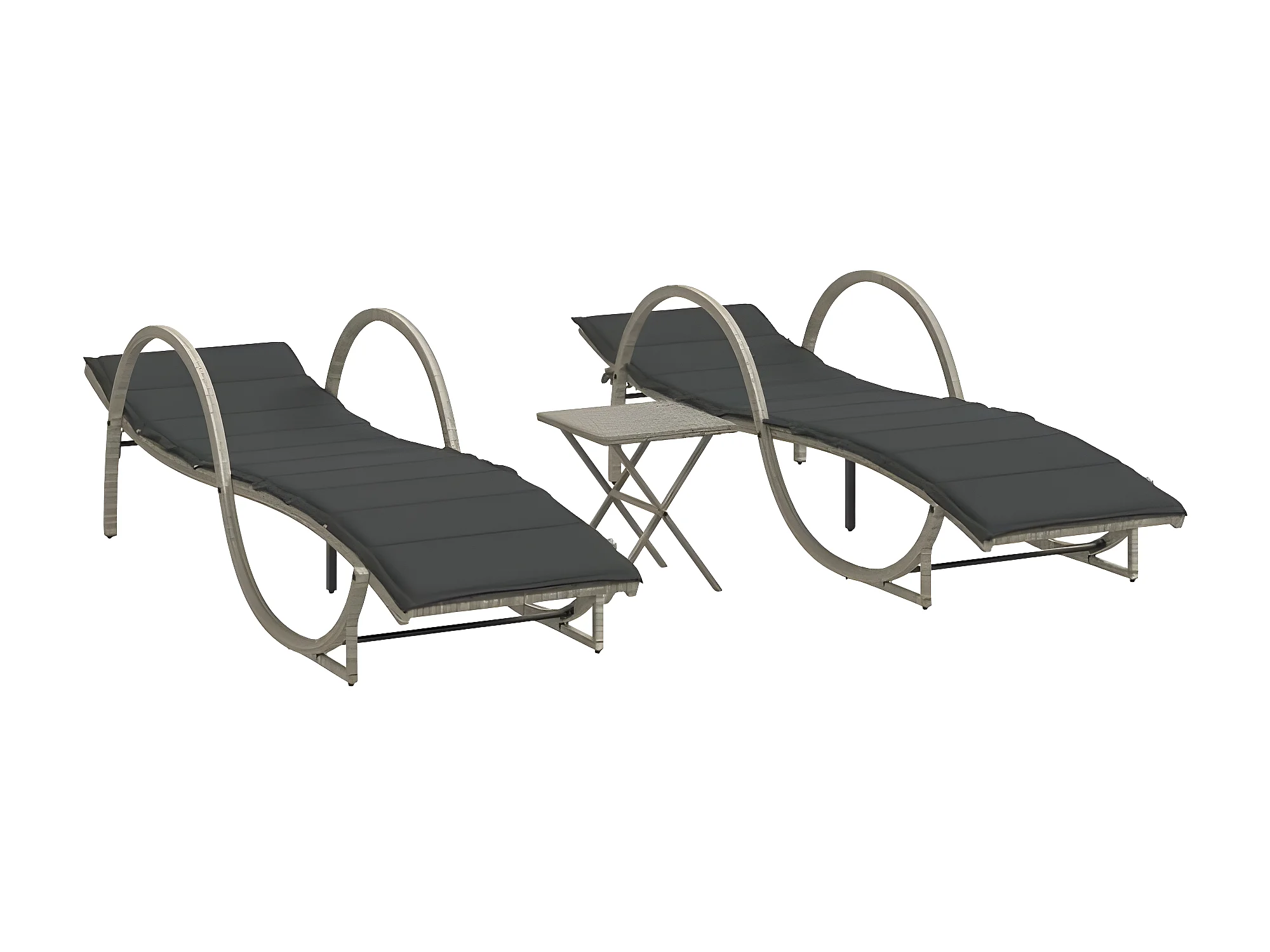 Chaises longues lot de 2 avec table gris clair résine tressée