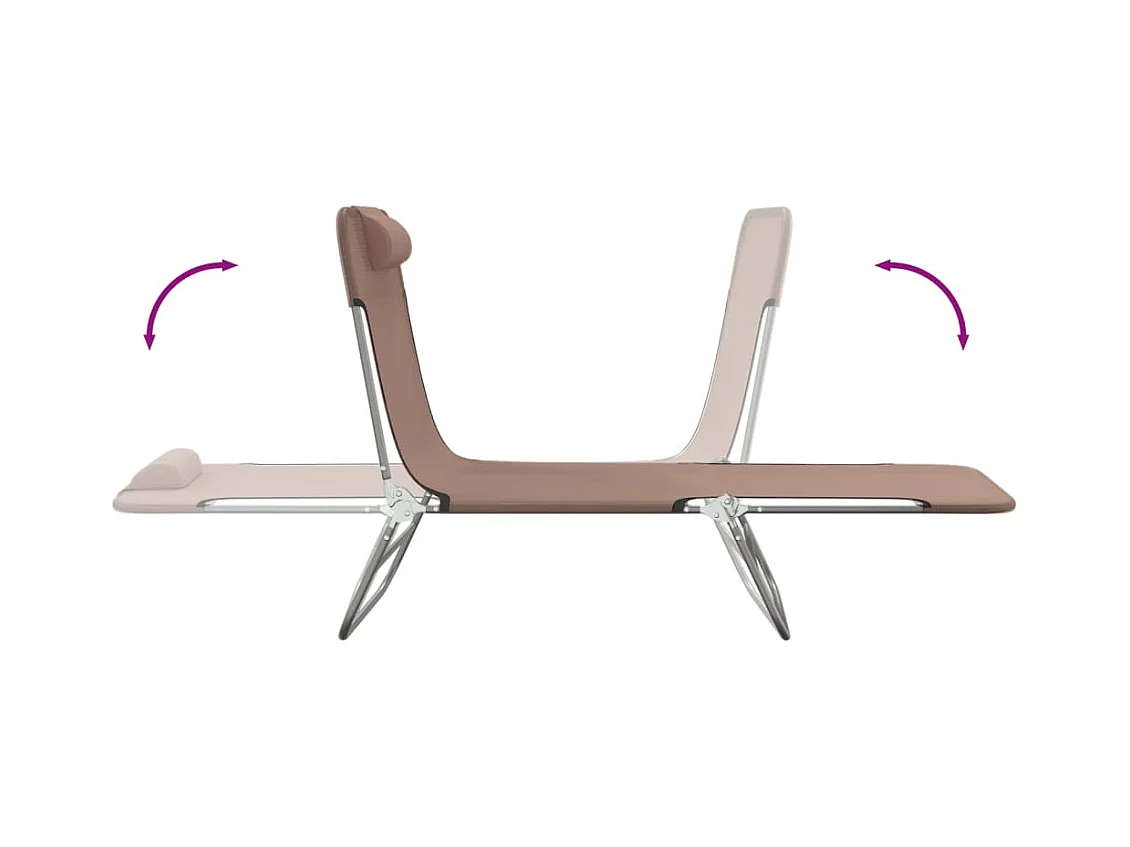 Lot de 2 Chaises longues avec Dossier Réglable, Tissu Respirant, Structure Robuste en Acier, Charge Max 150KG, Marron
