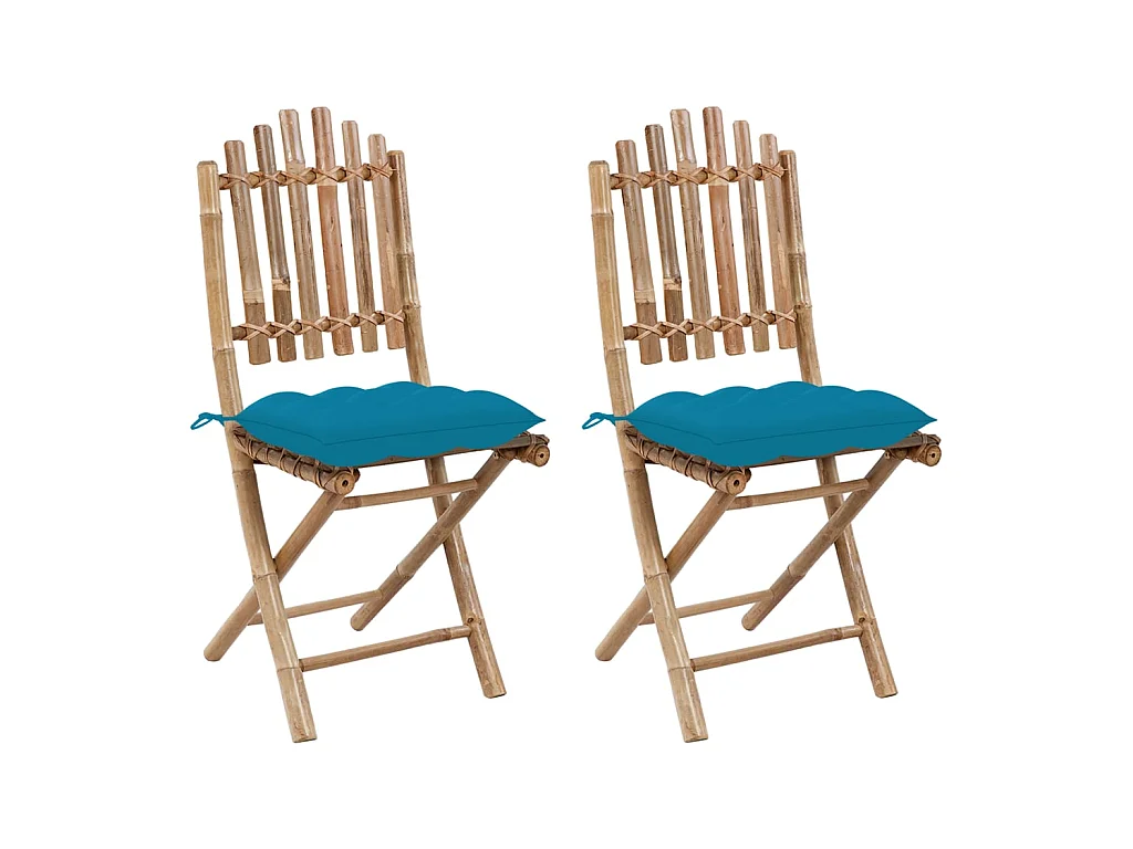 Chaises pliables de jardin 2 pcs avec coussins Bambou 11