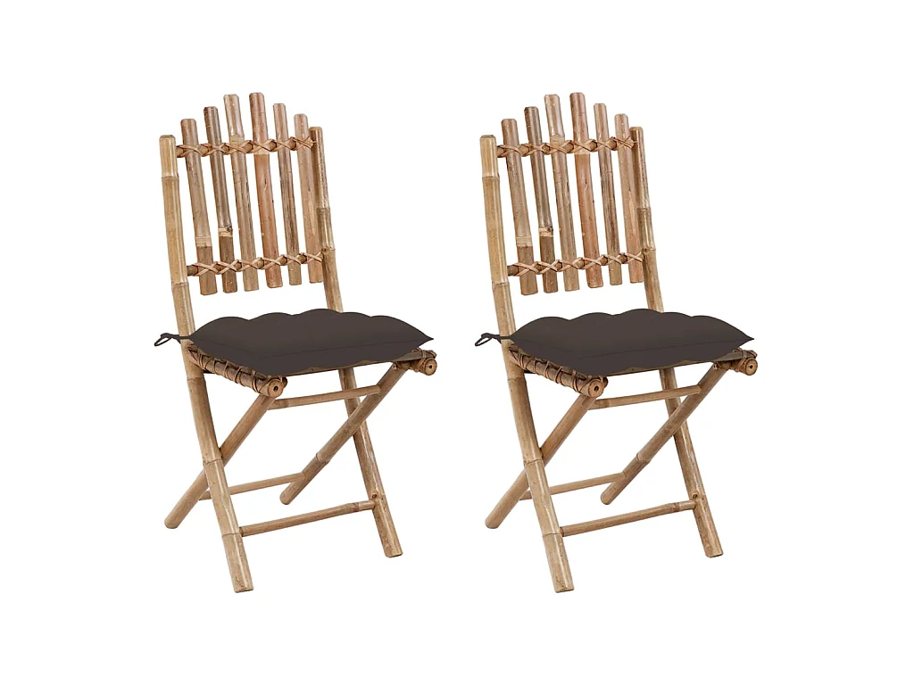Chaises pliables de jardin 2 pcs avec coussins Bambou 24