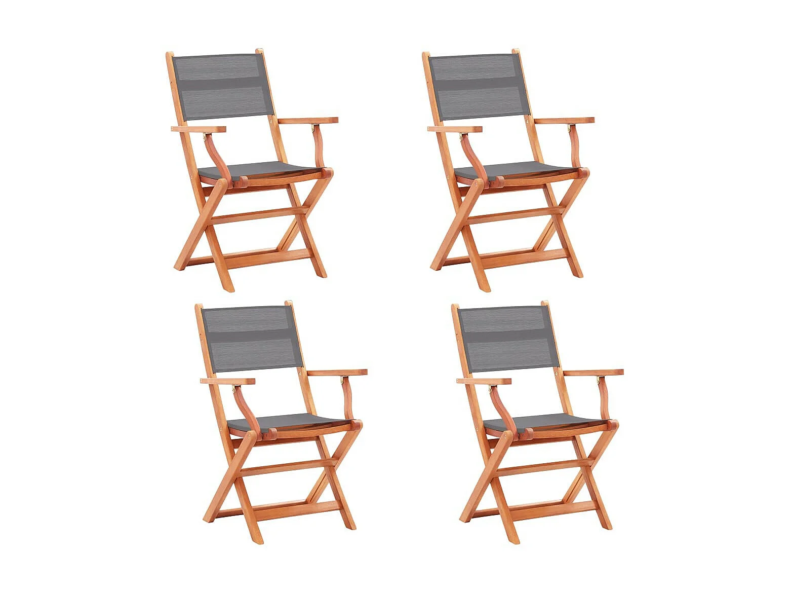 Chaises pliables de jardin 4 pcs Gris Eucalyptus et textilène