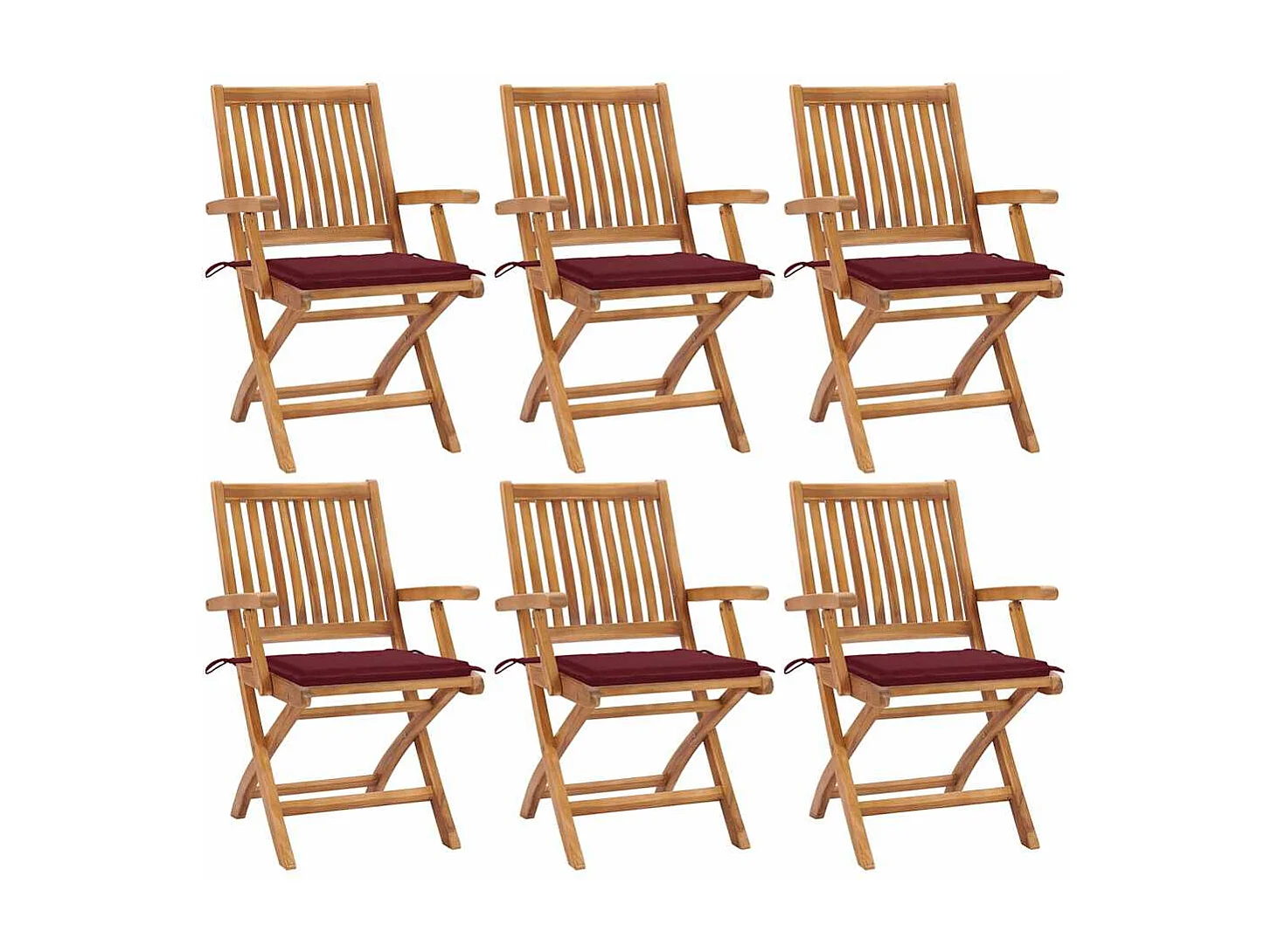 Chaises pliables de jardin avec coussins lot de 6 Bois de teck