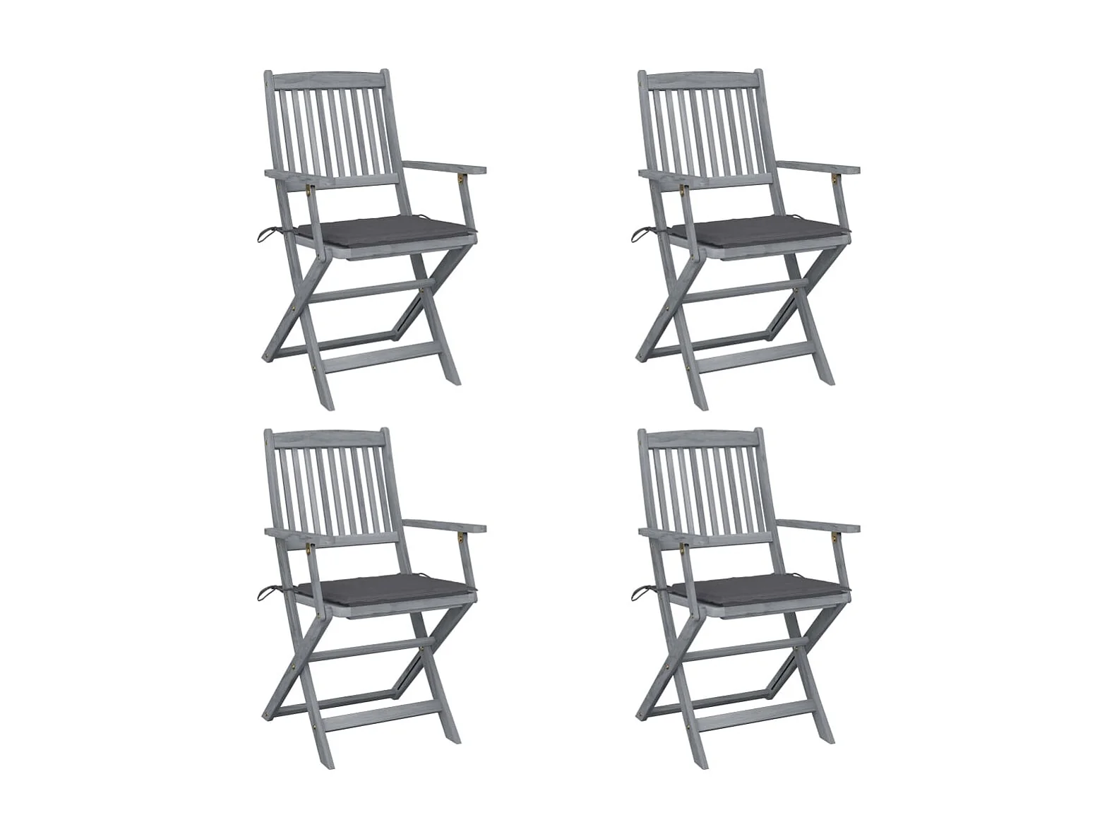 Chaises pliables d'extérieur 4 pcs avec coussins Bois d'acacia