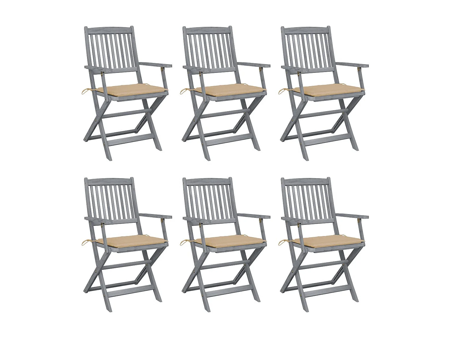 Chaises pliables d'extérieur lot de 6 et coussins Bois d'acacia