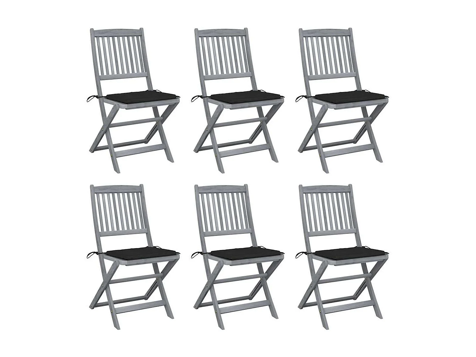 Chaises pliables d'extérieur lot de 6 et coussins Bois d'acacia